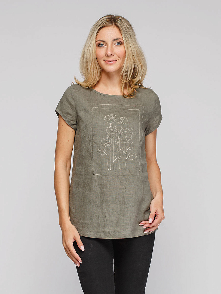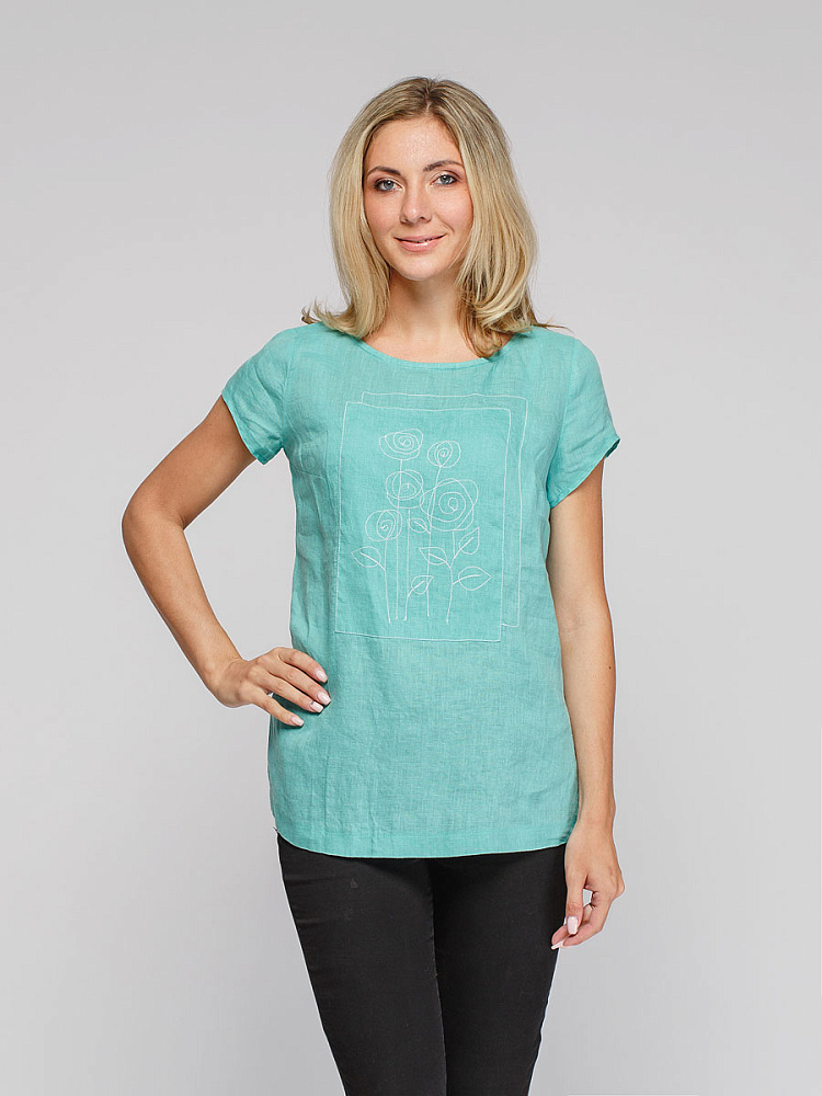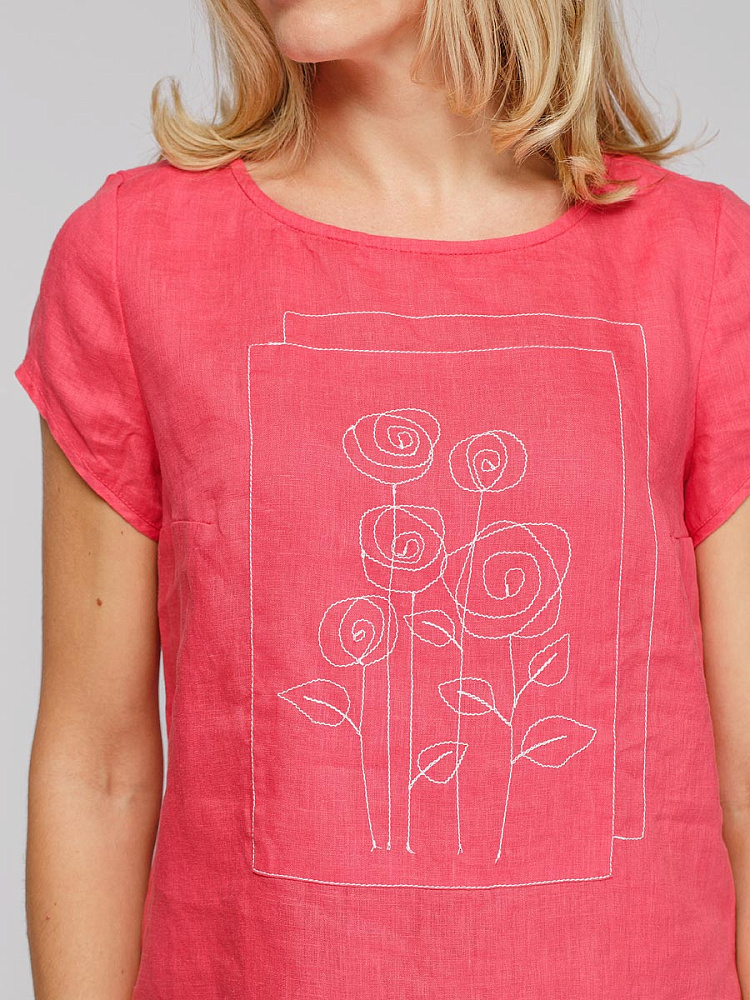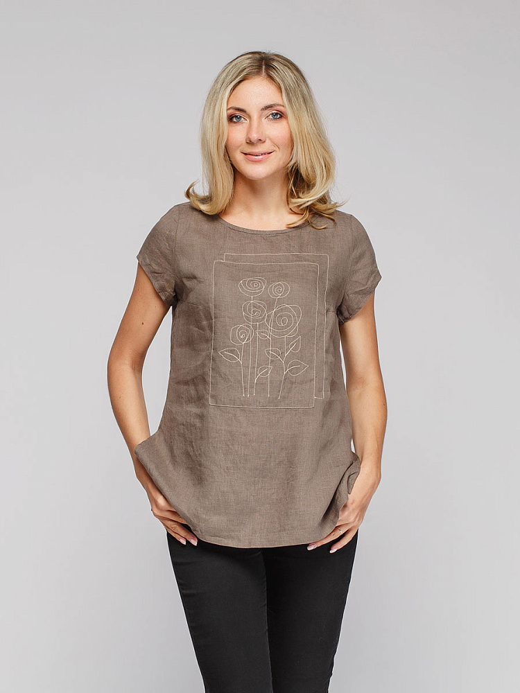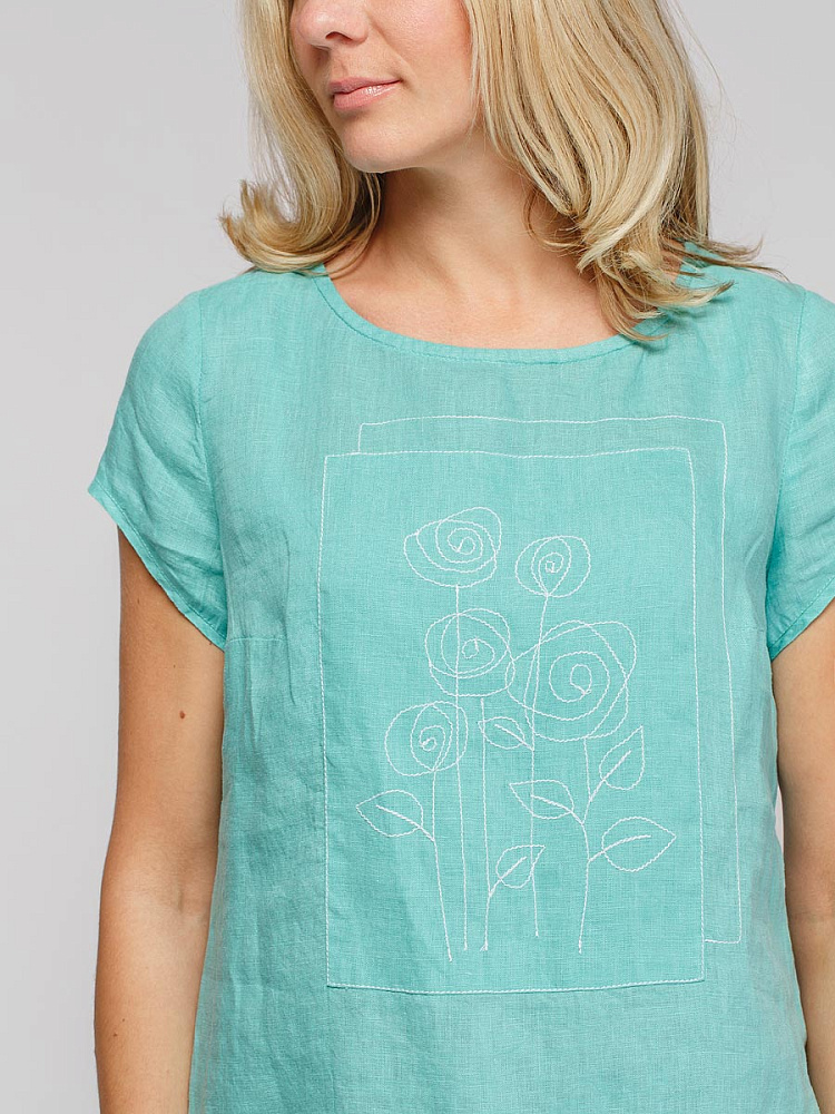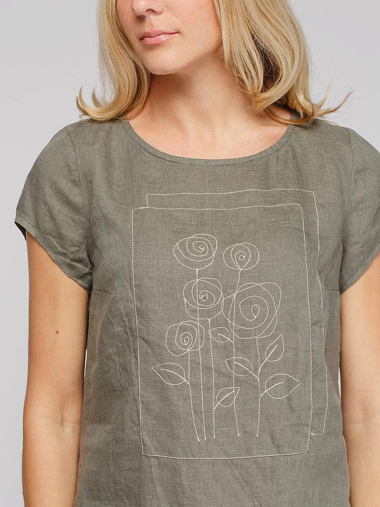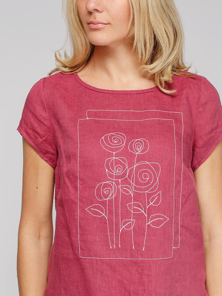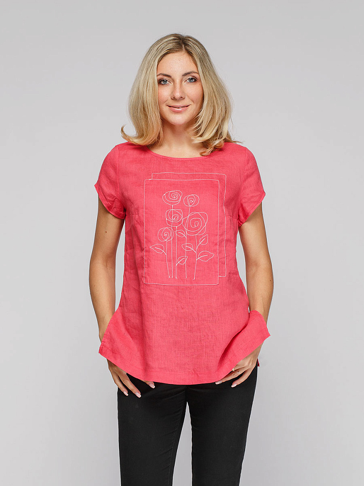 Простые формы силуэта - как основа для эклектичного дизайна представленной модели блузы. Цветочный орнамент органичен на самобытной текстуре льна. А все остальные конструктивные решения как практичное дополнение – на каждый день.