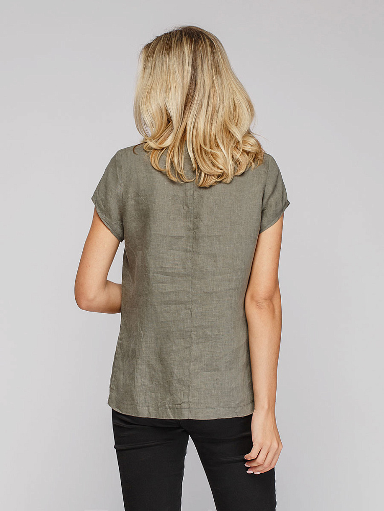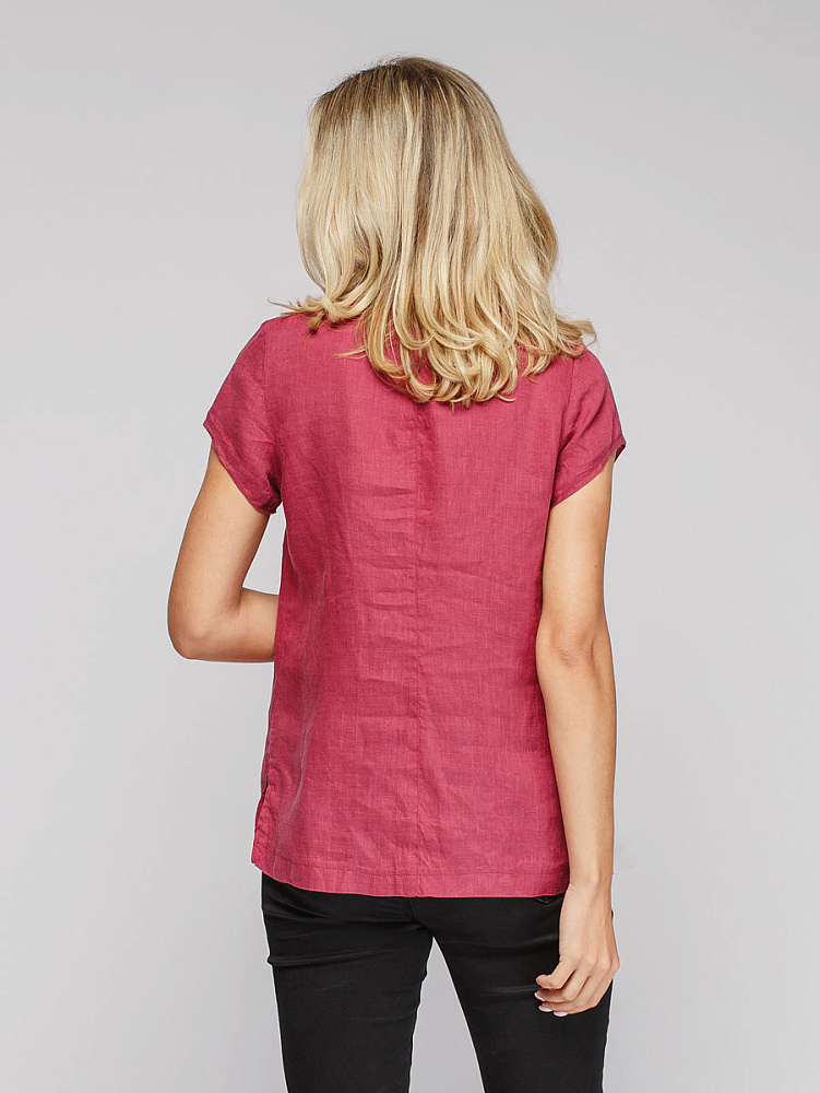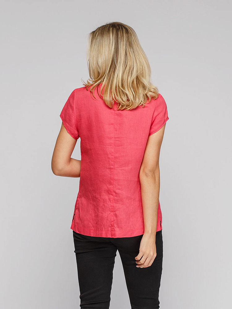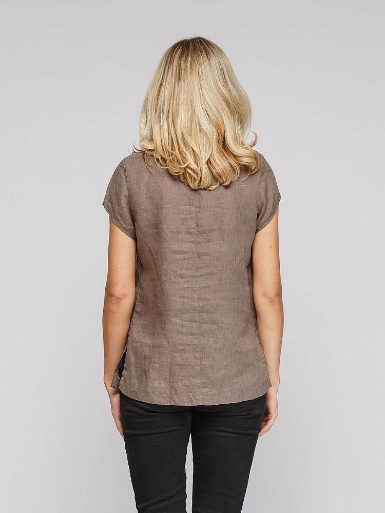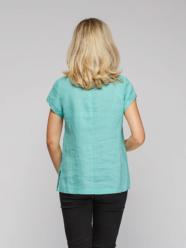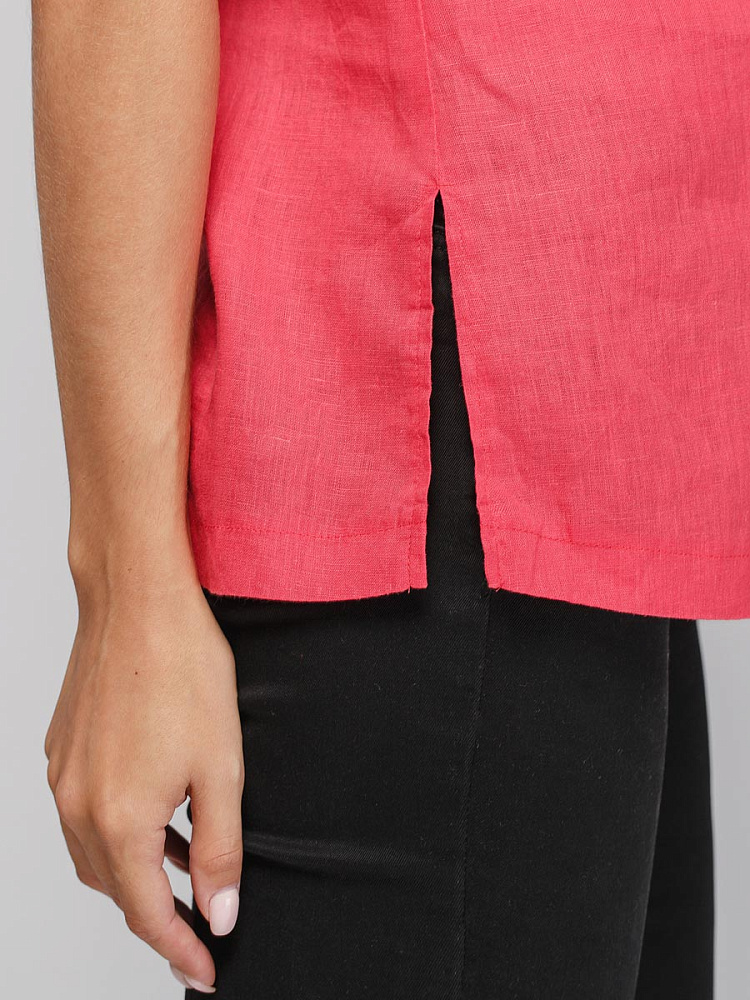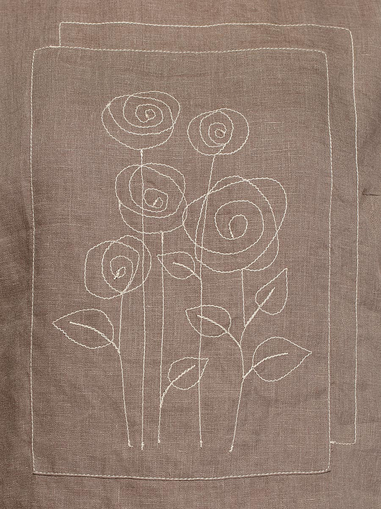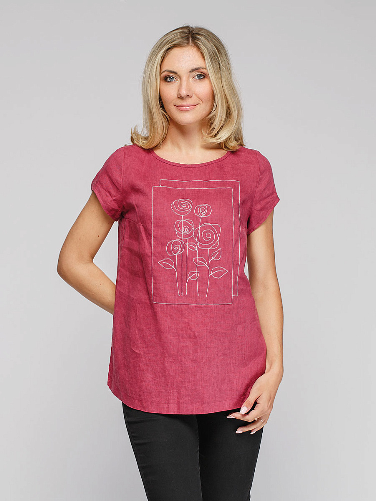 Простые формы силуэта - как основа для эклектичного дизайна представленной модели блузы. Цветочный орнамент органичен на самобытной текстуре льна. А все остальные конструктивные решения как практичное дополнение – на каждый день.