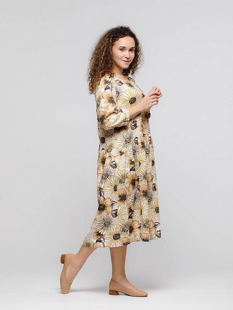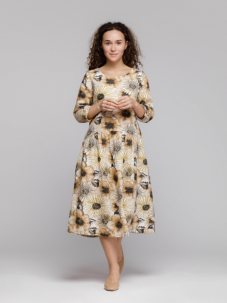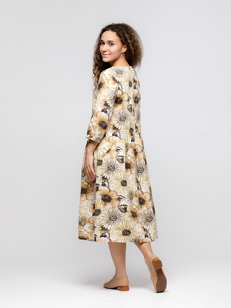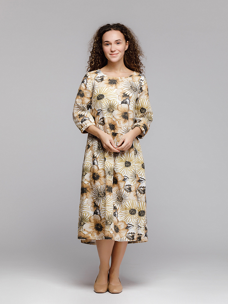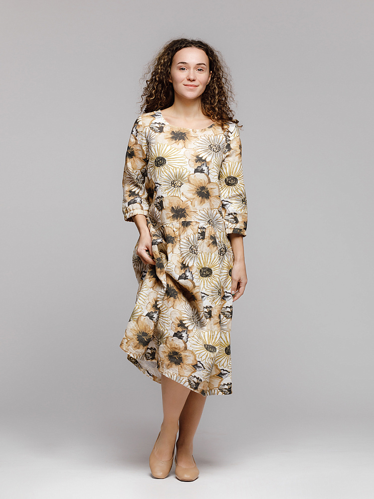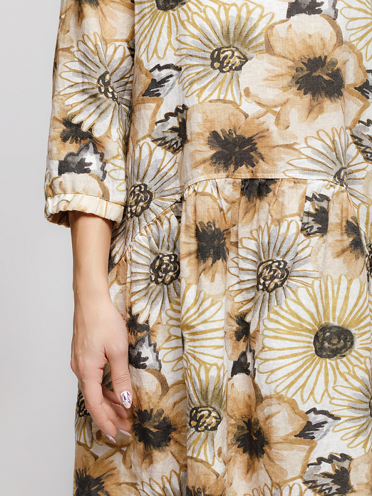 Широкими мазками акварели художник нанёс цветочный принт на льняную ткань, подобно холсту. Дизайнеры Kayros соединили свои стилистические замыслы с этим многообразием цвета и получилось – платья на лето. Цветовые решения модели – как главный декор, не требующий дополнений. А свободный крой дарит лёгкость и комфорт.