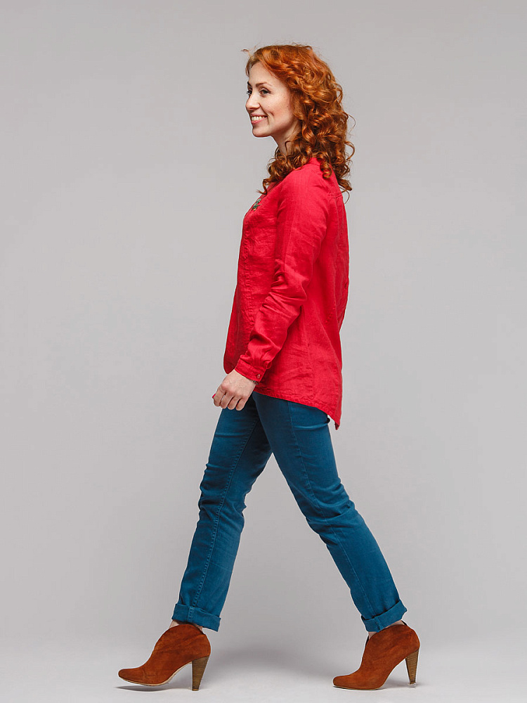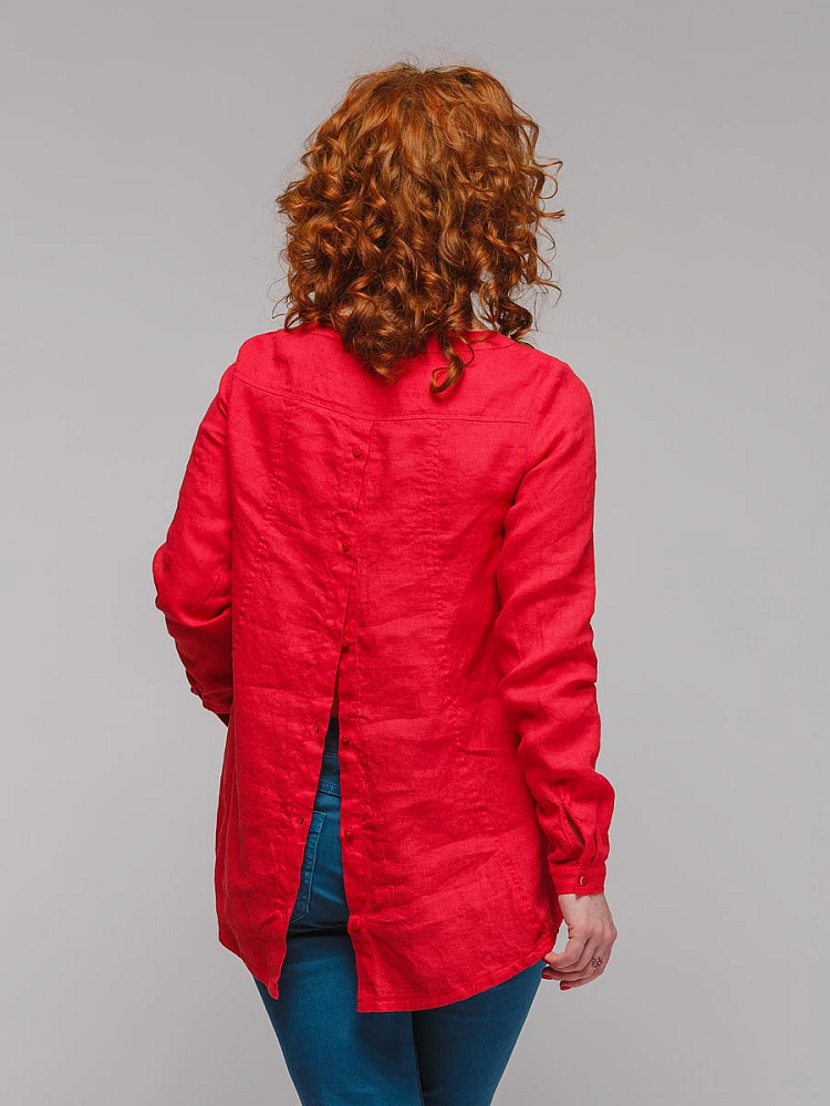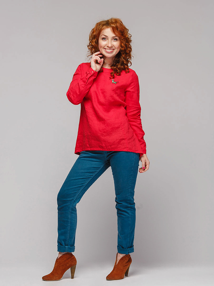 Просто, мило и непринуждённо – можно сказать о представленной блузе. Оригинальный декор на спинке в виде застёжки на пуговицах привносит новизну и свежесть. А отсутствие излишеств на полочке даёт возможность вашим экспериментам.