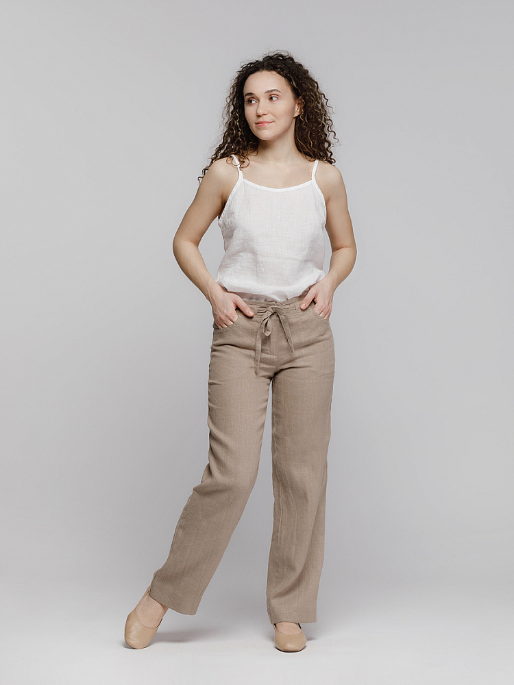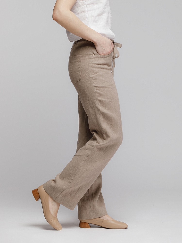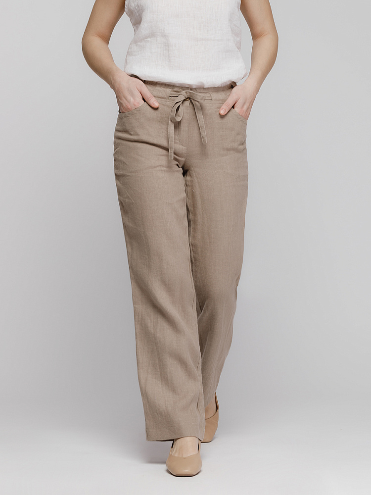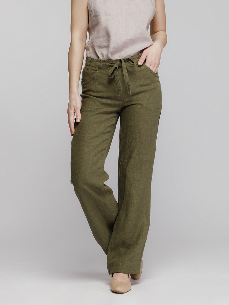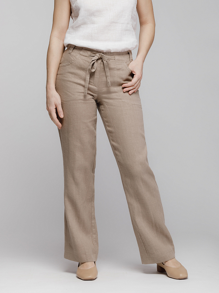 Похолодание не предвидится? Наши брюки из льна приятно носить даже в самое жаркое время. Накладные карманы подчеркивают спортивный стиль брюк, а пояс продернутый сквозь петли, позволит вам регулировать ширину на уровне талии.