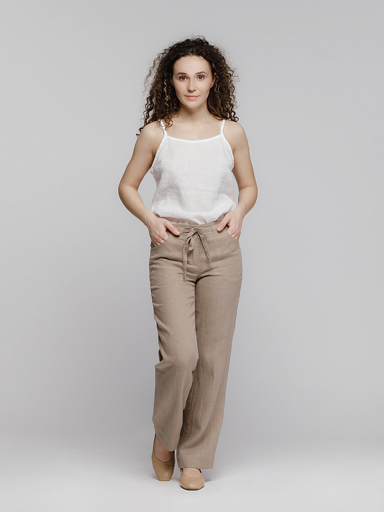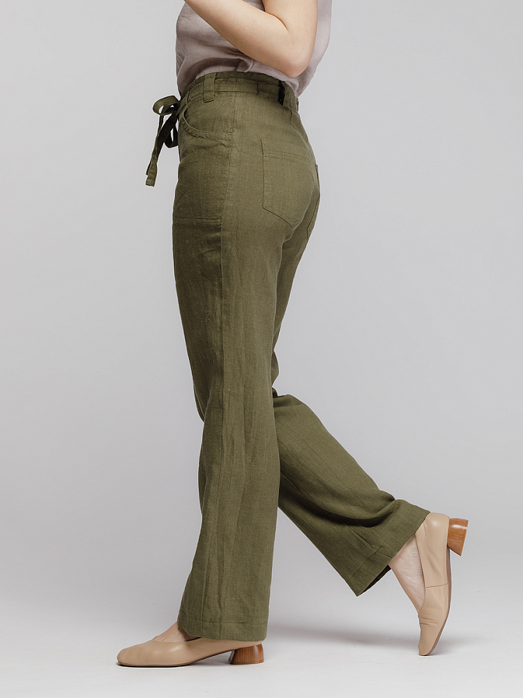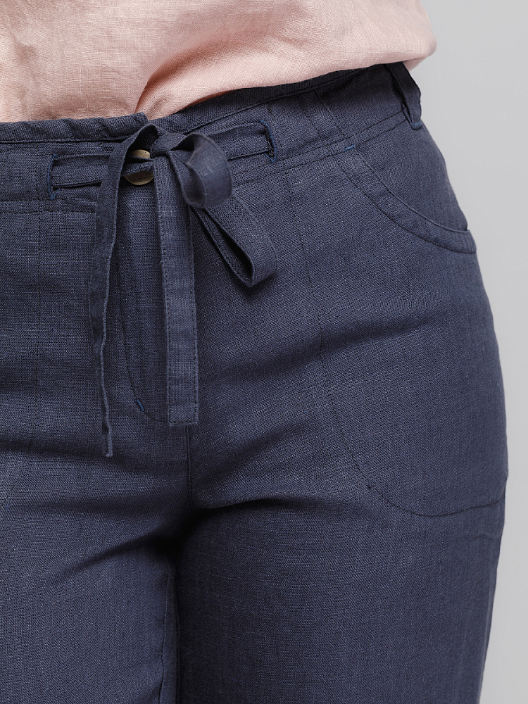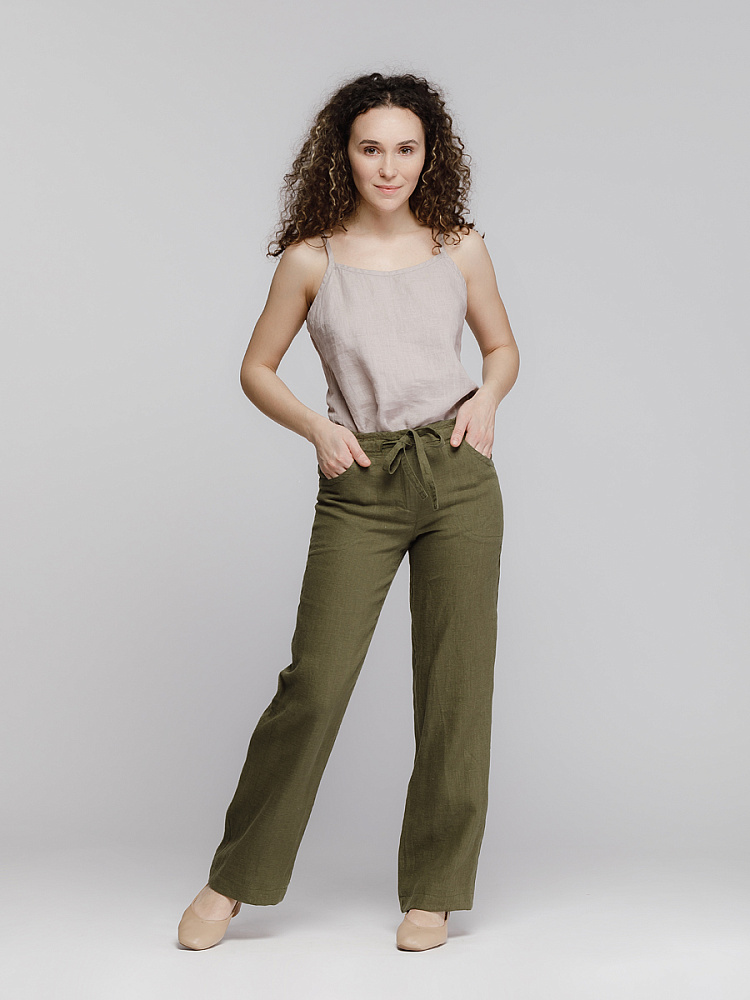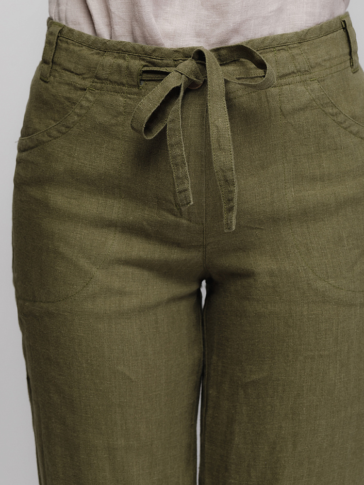 Похолодание не предвидится? Наши брюки из льна приятно носить даже в самое жаркое время. Накладные карманы подчеркивают спортивный стиль брюк, а пояс продернутый сквозь петли, позволит вам регулировать ширину на уровне талии.
