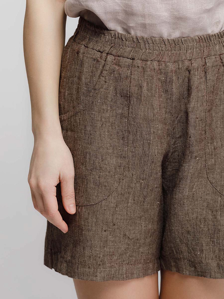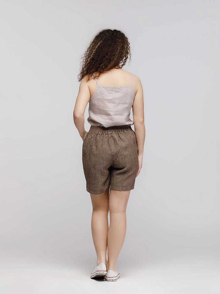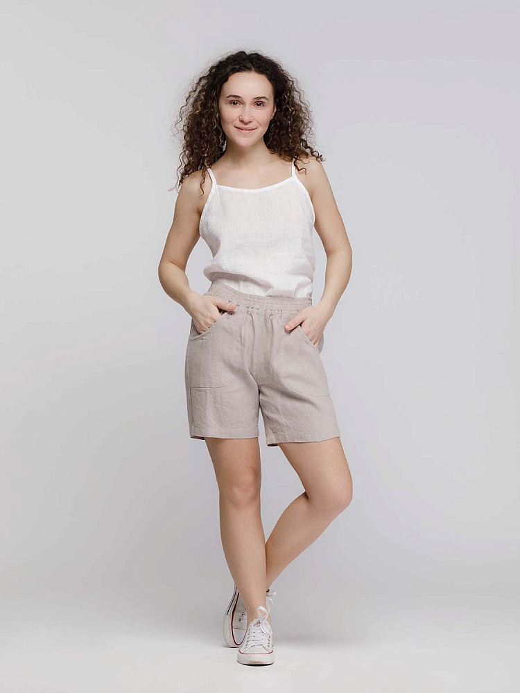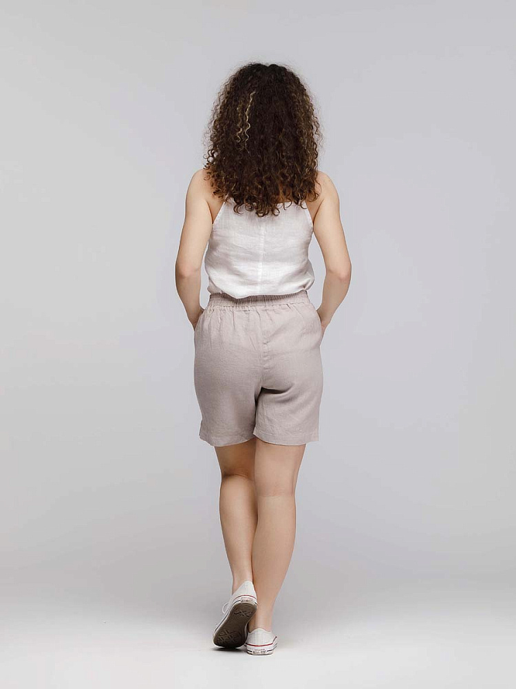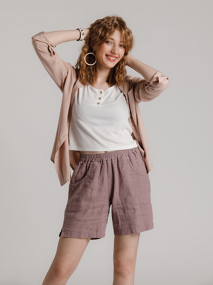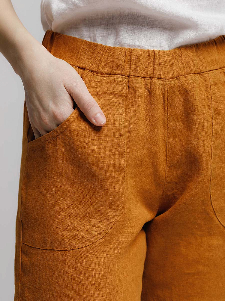 Представленная модель из льна обладает эластичным поясом, что позволяет комфортно