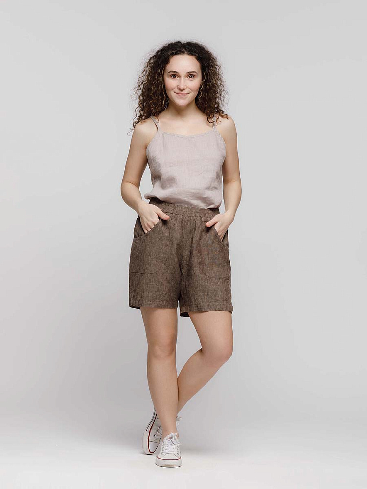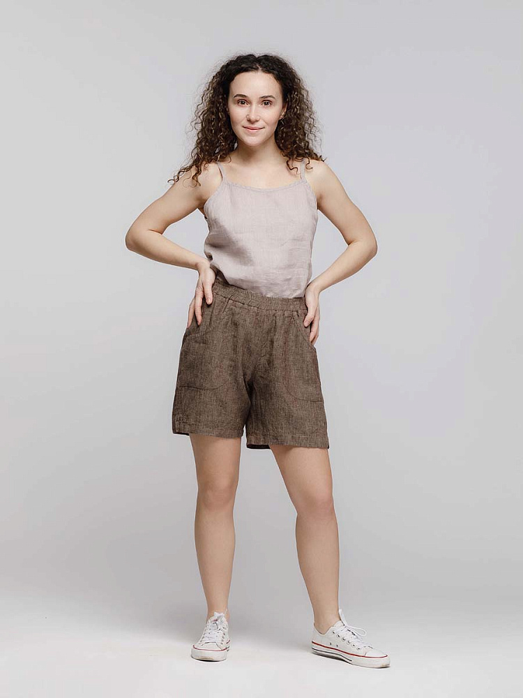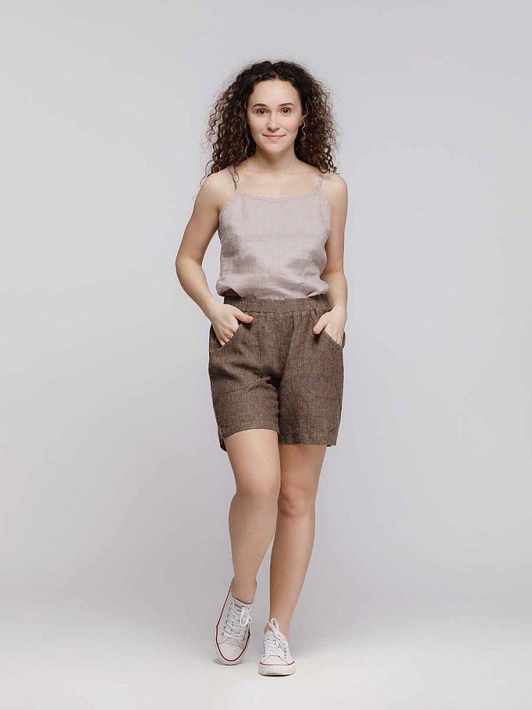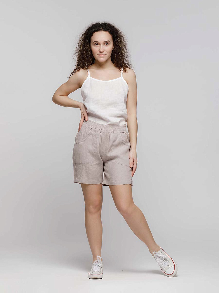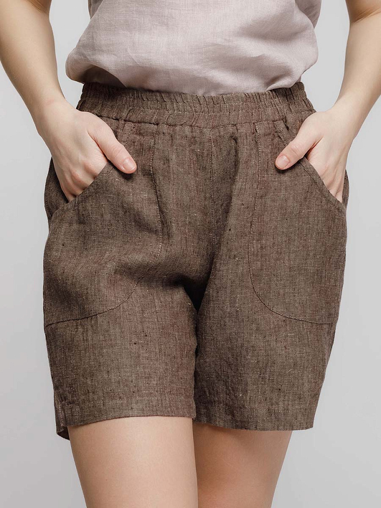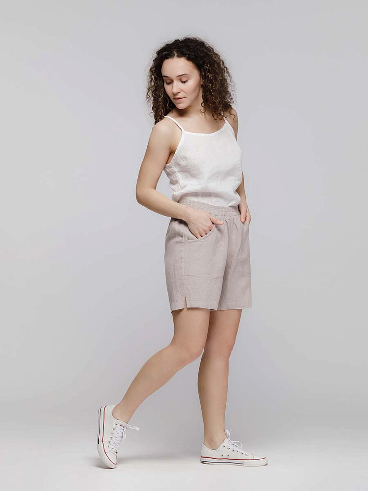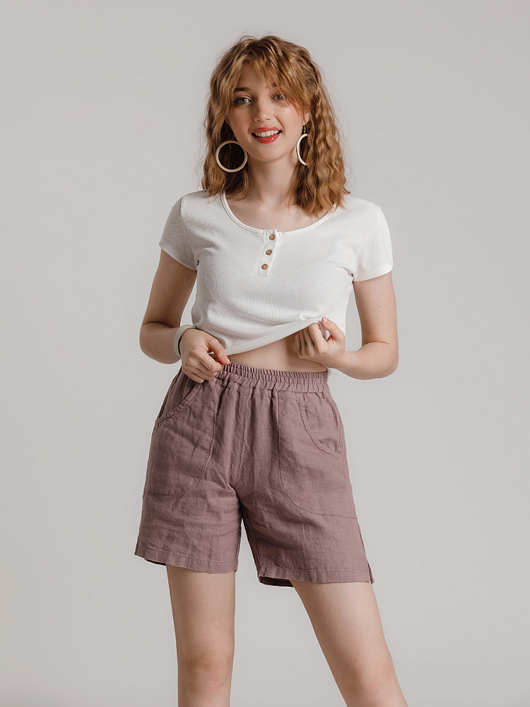 Представленная модель из льна обладает эластичным поясом, что позволяет комфортно