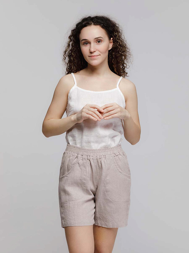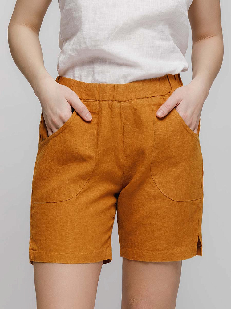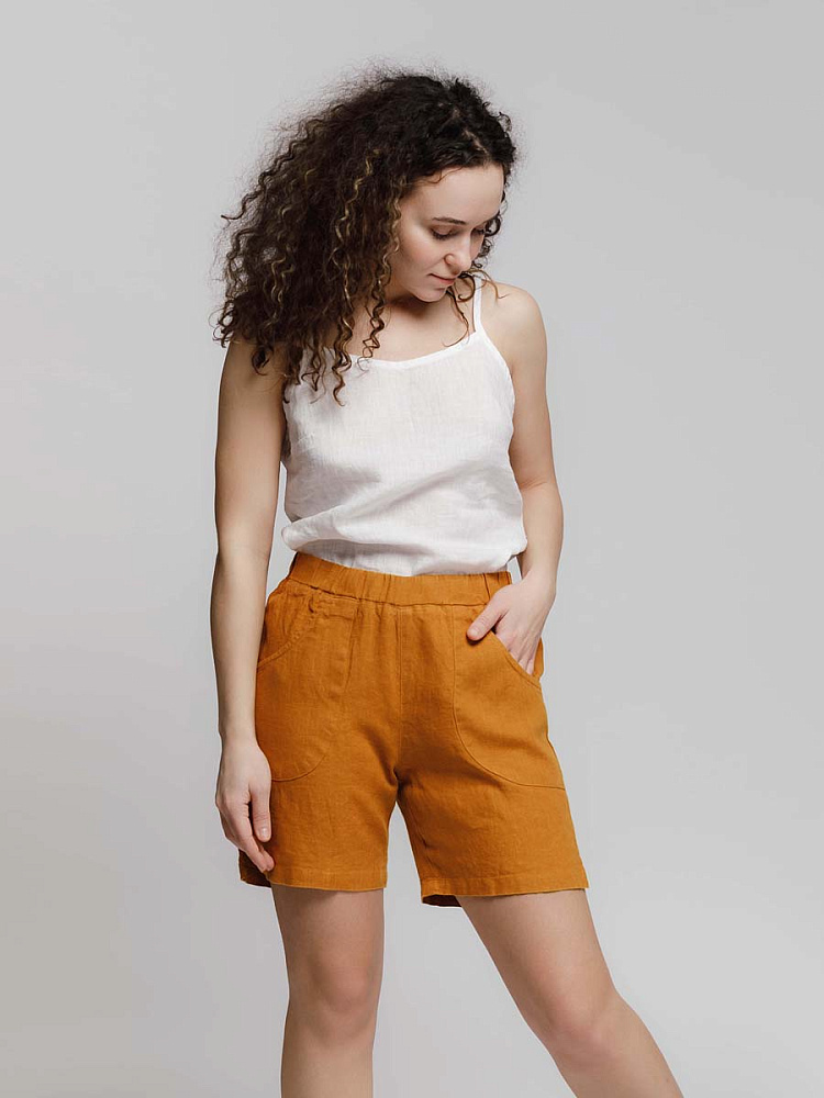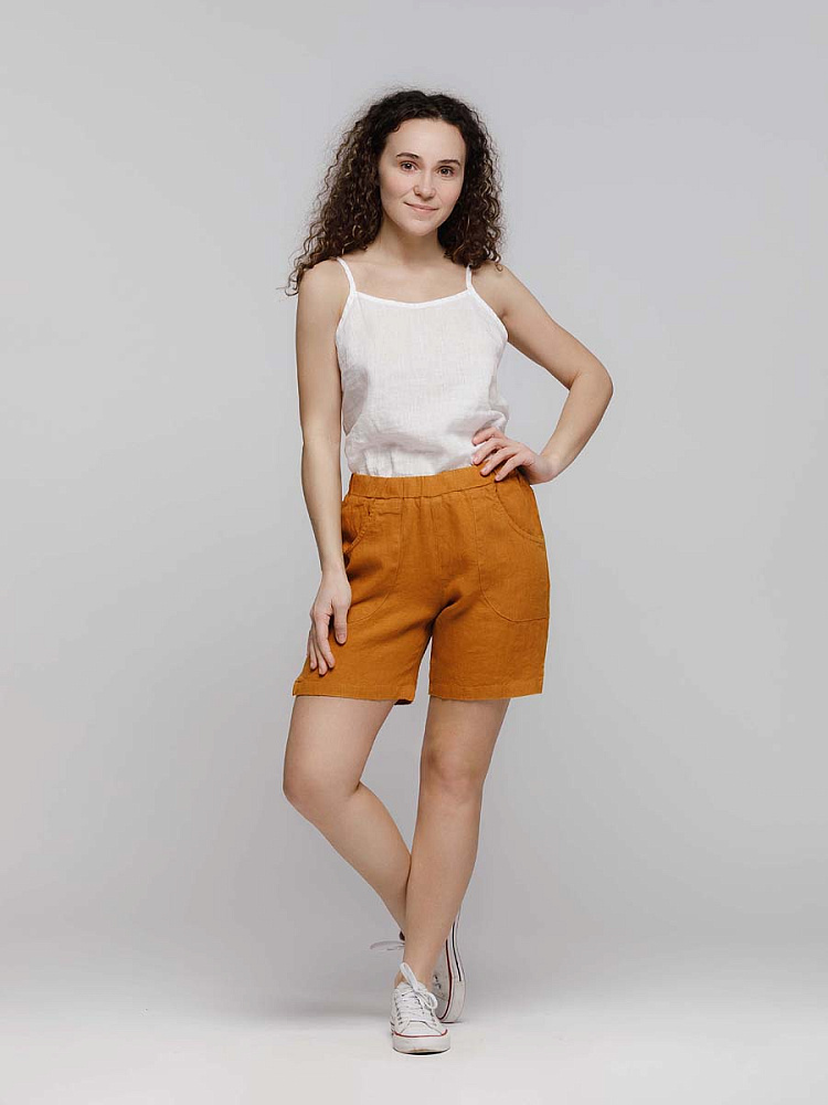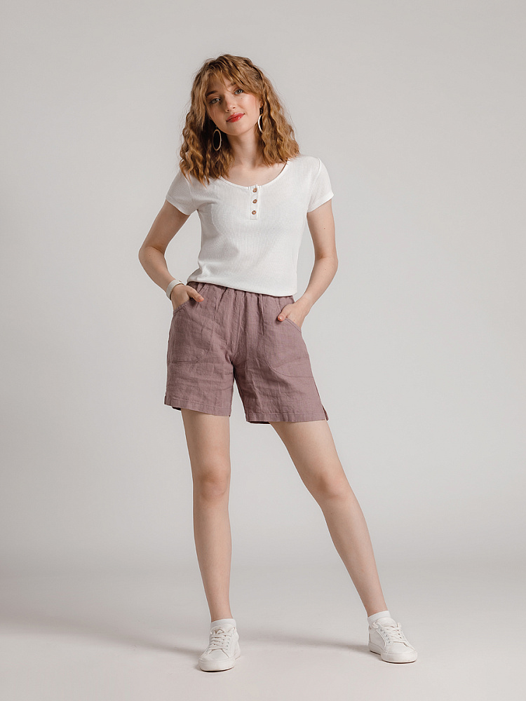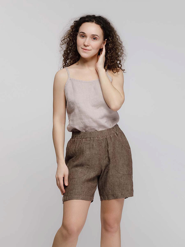 Представленная модель из льна обладает эластичным поясом, что позволяет комфортно