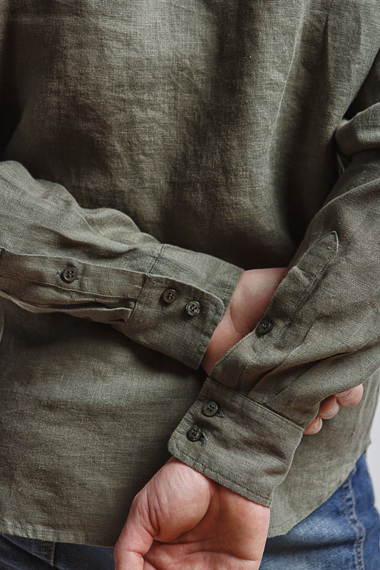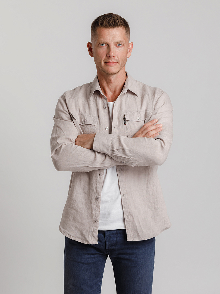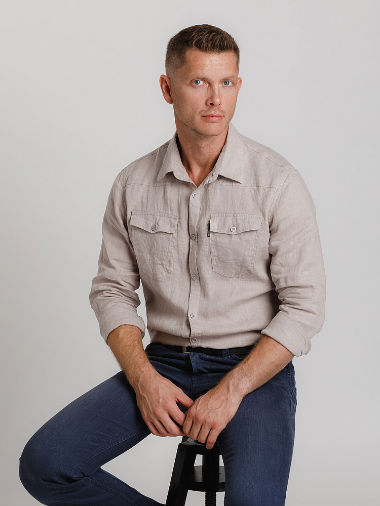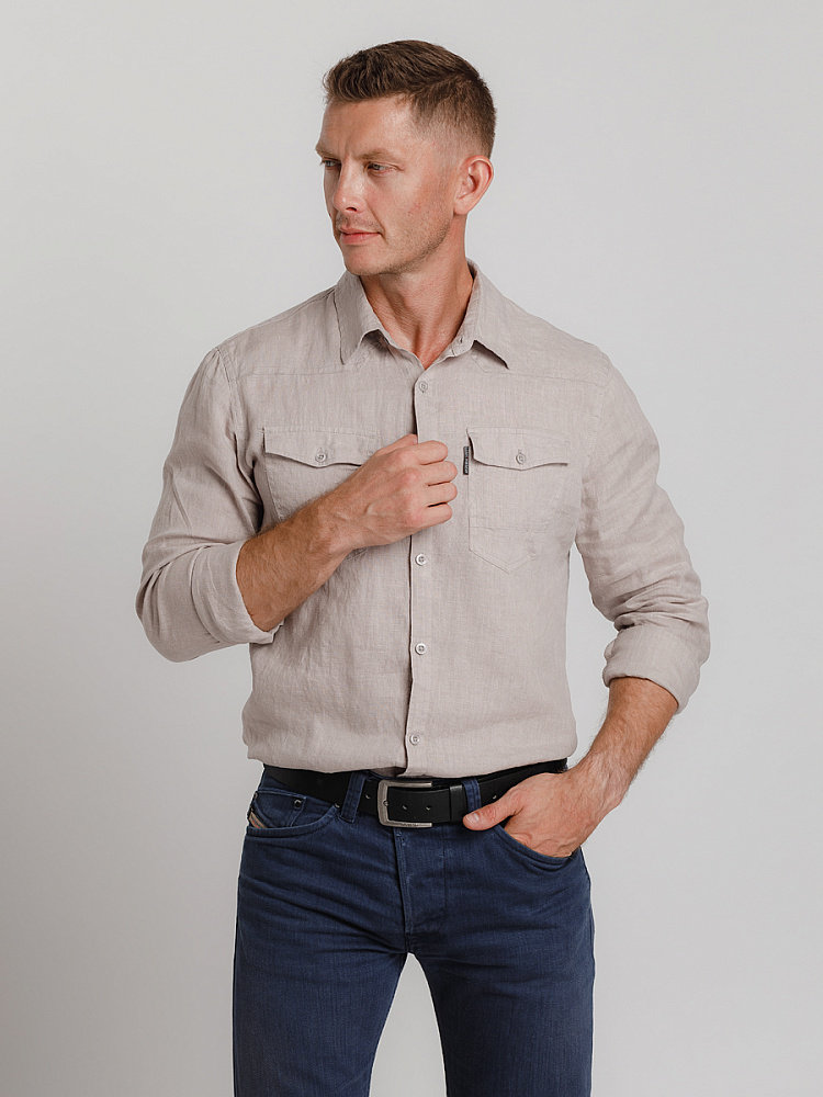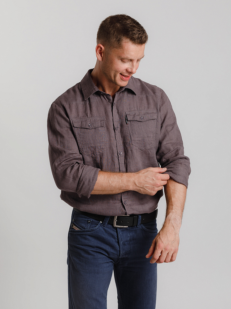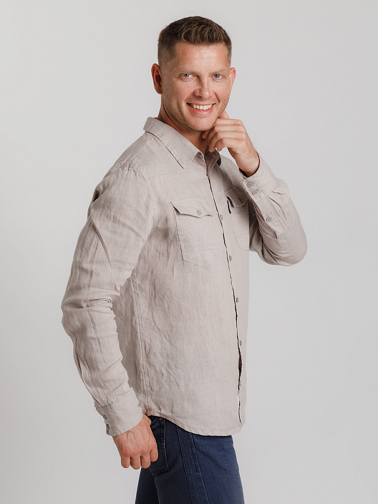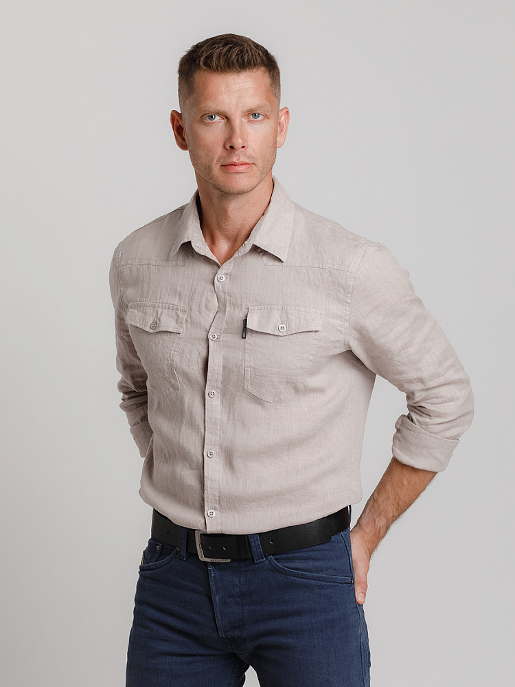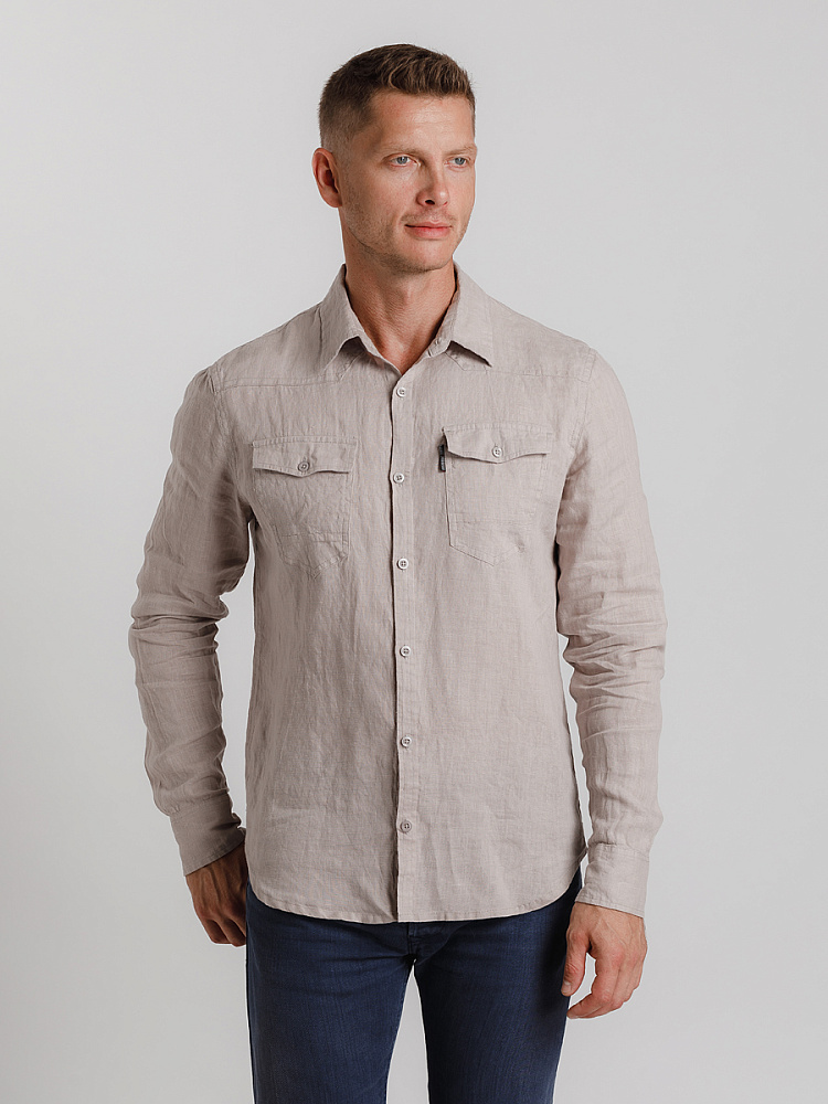 классическими накладными карманами, прекрасны в исполнении жатой текстуры льна.
