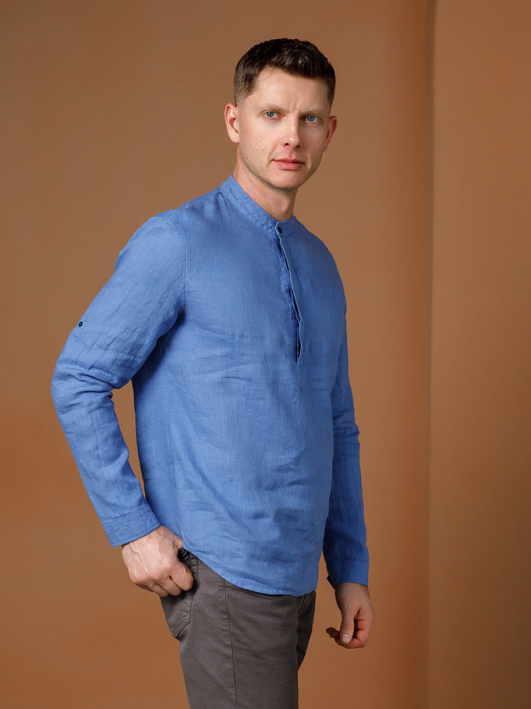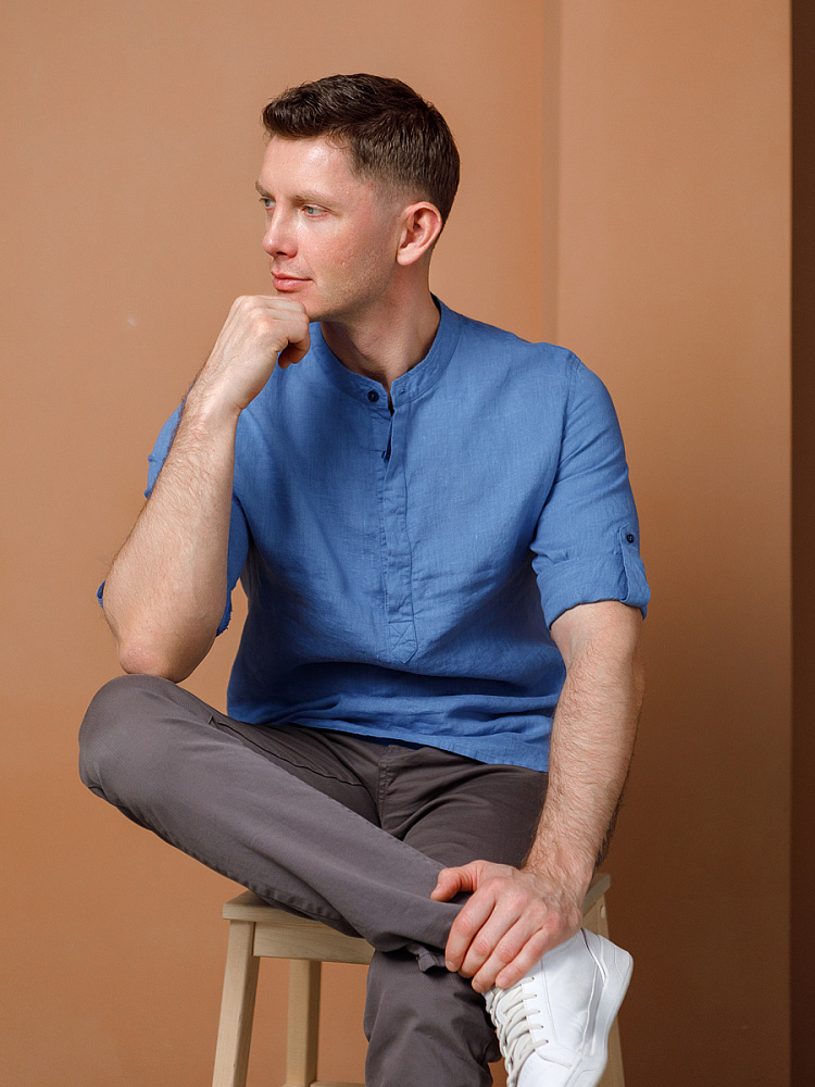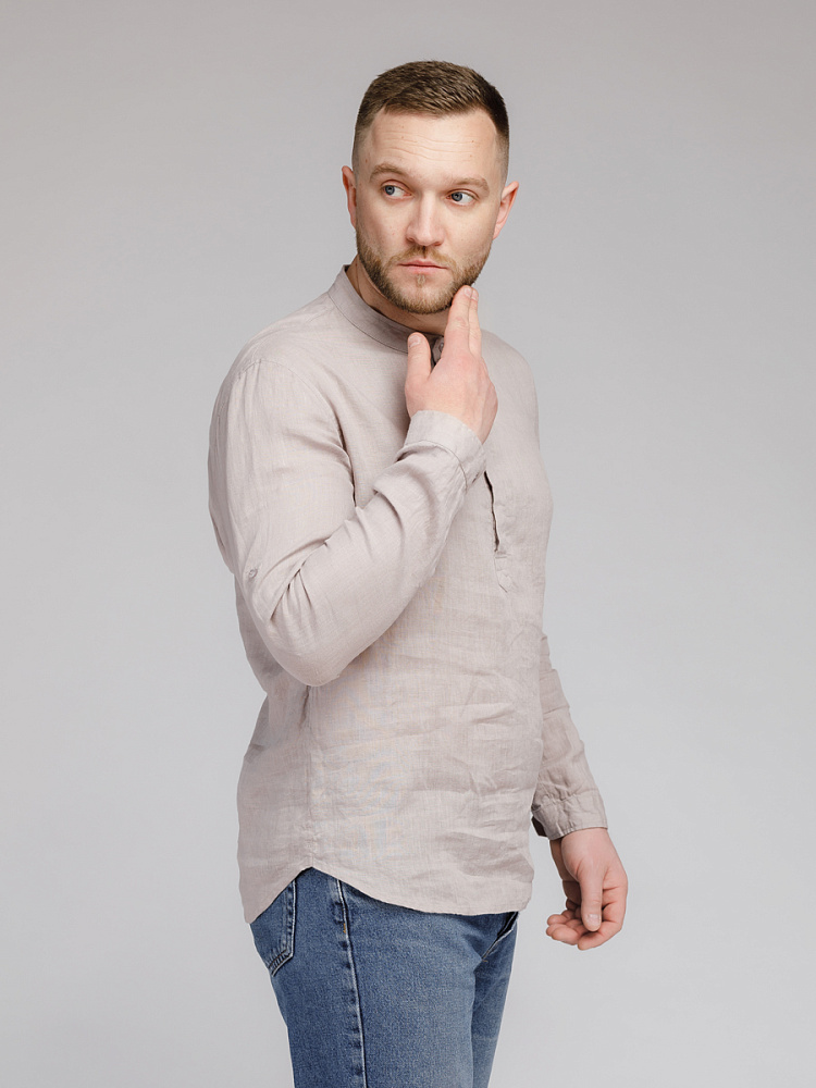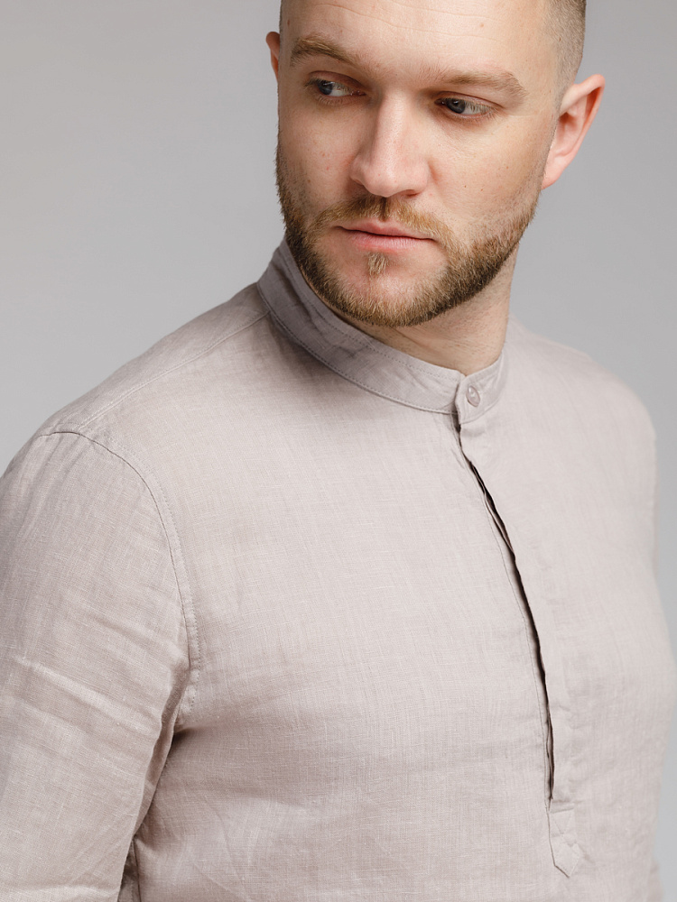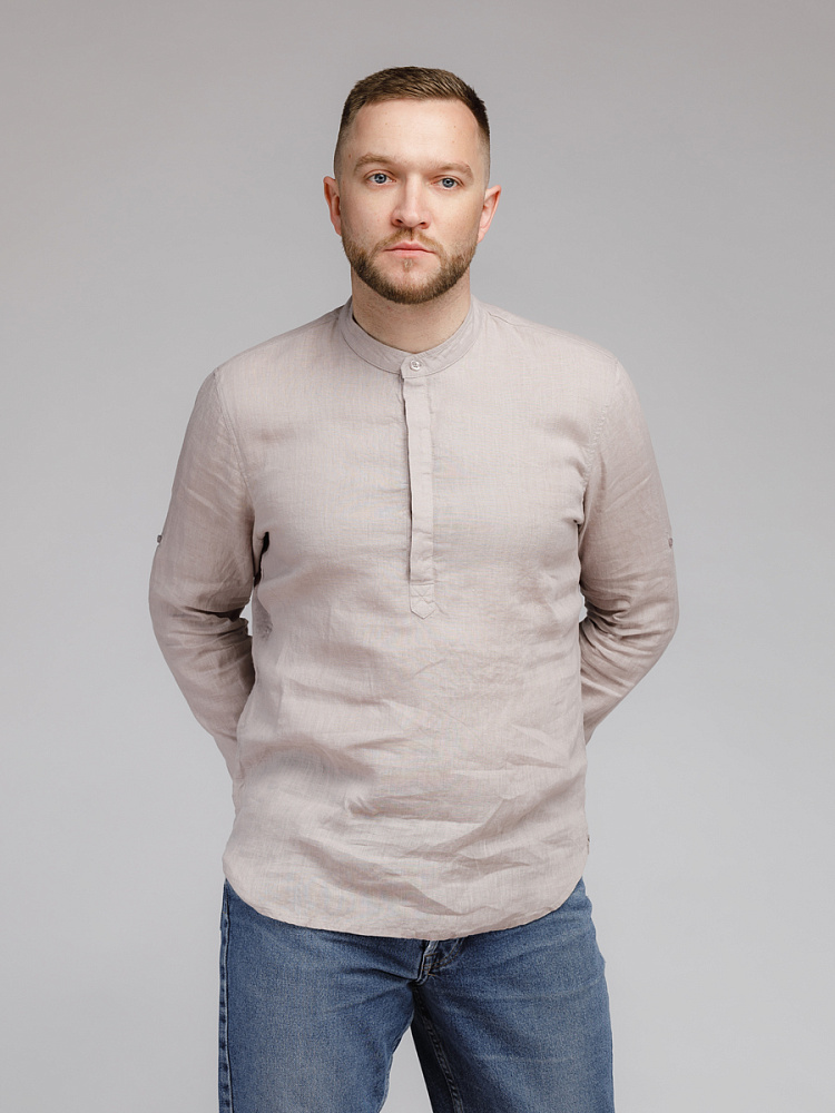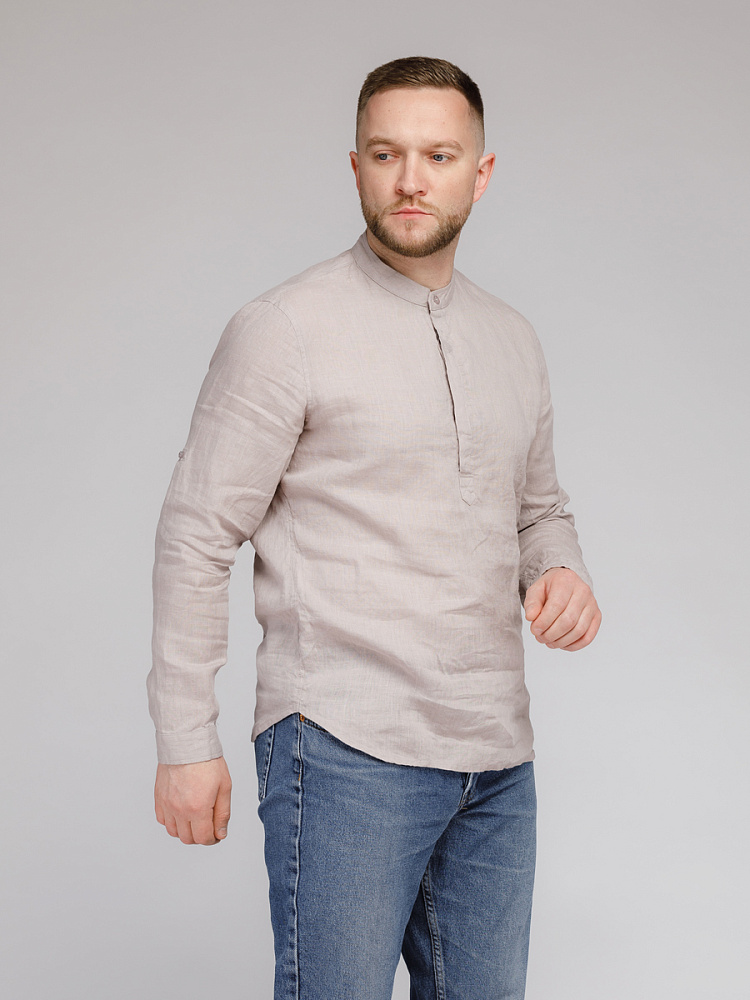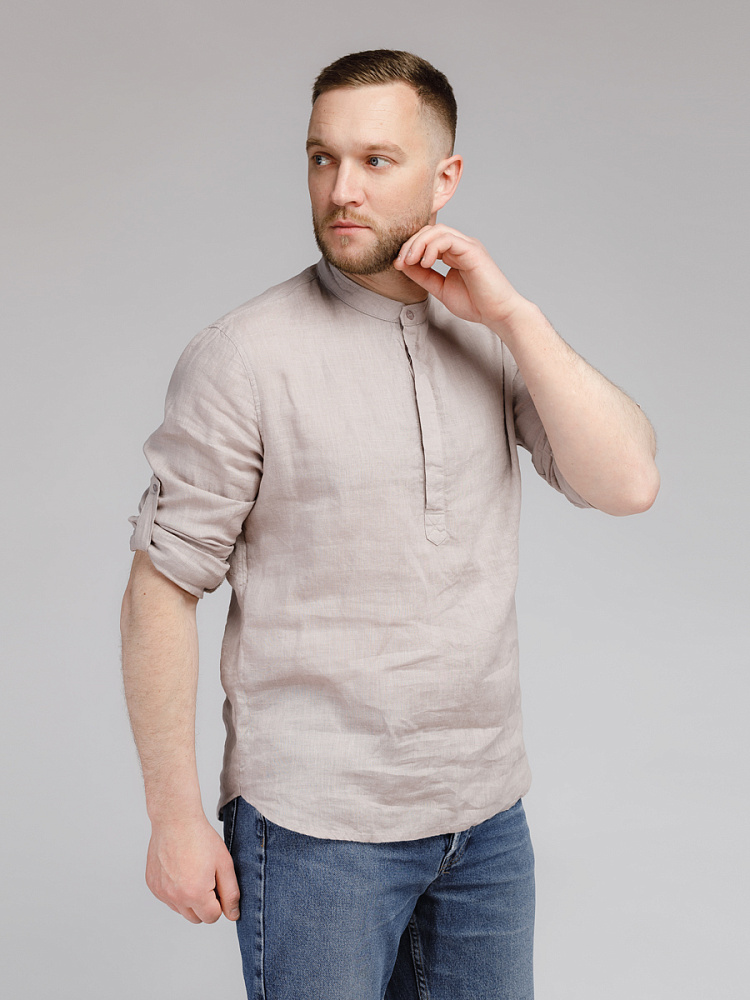 удобство испытает любой обладатель этой модели льняной сорочки. Аскетичный декор модели