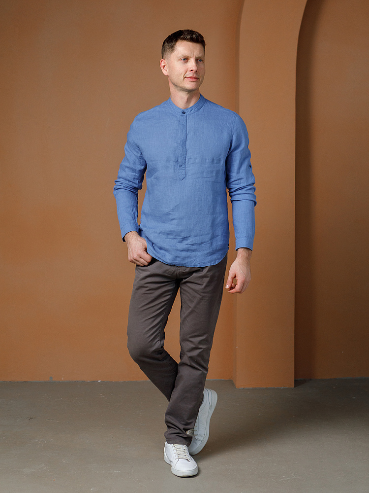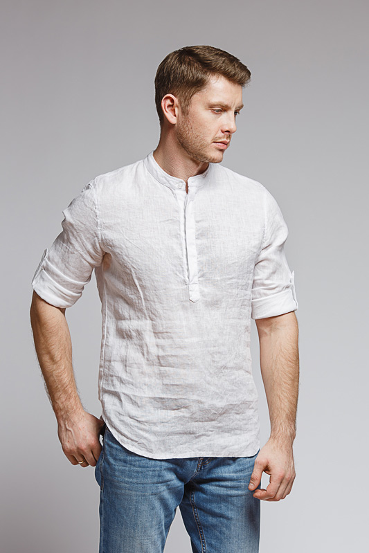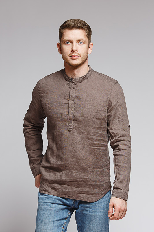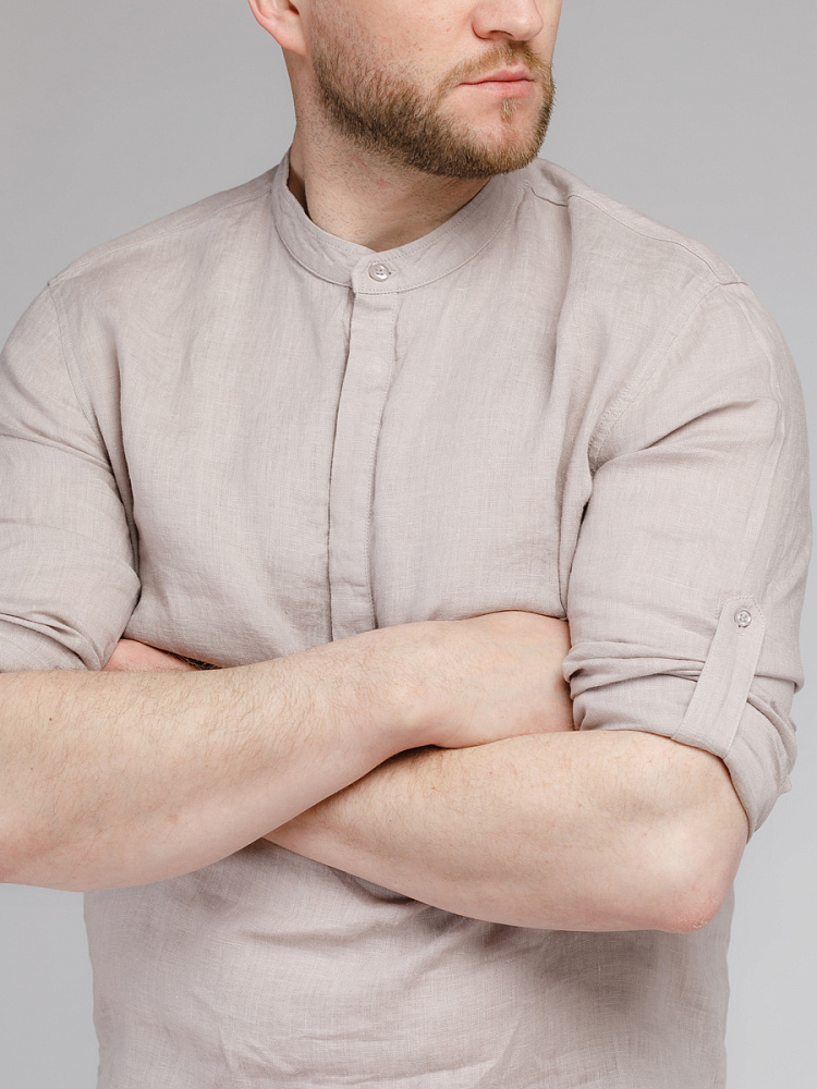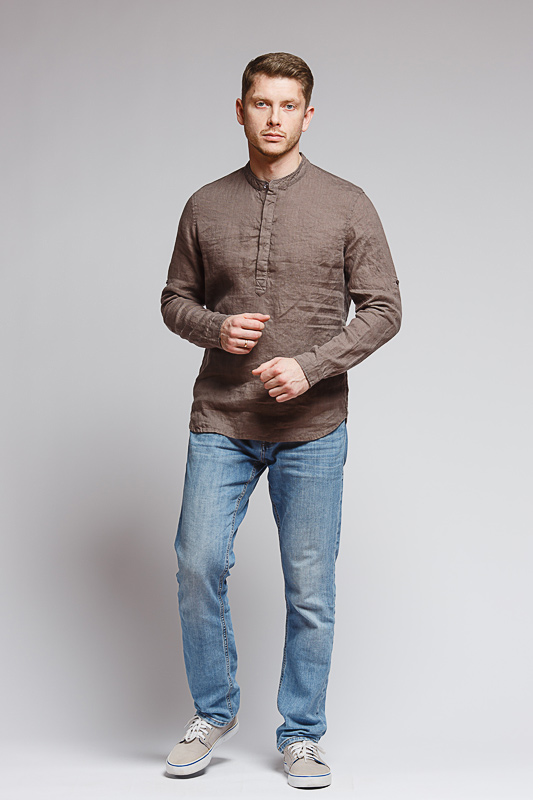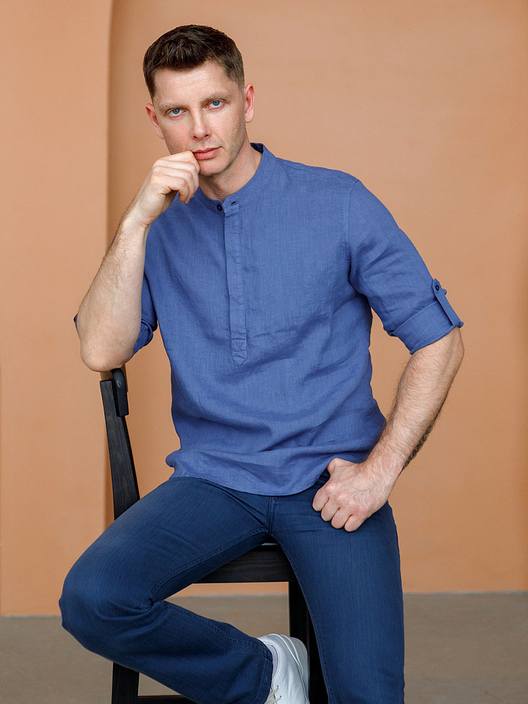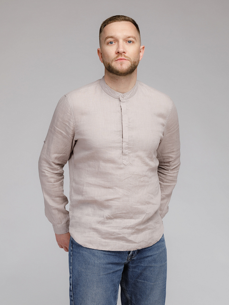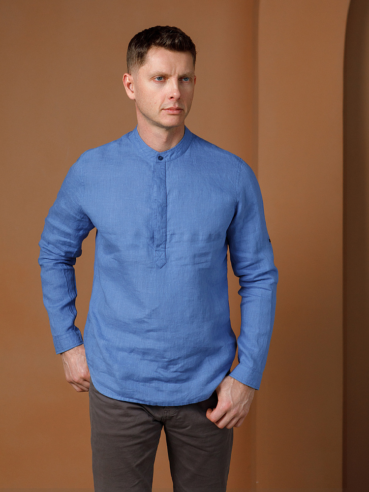 удобство испытает любой обладатель этой модели льняной сорочки. Аскетичный декор модели