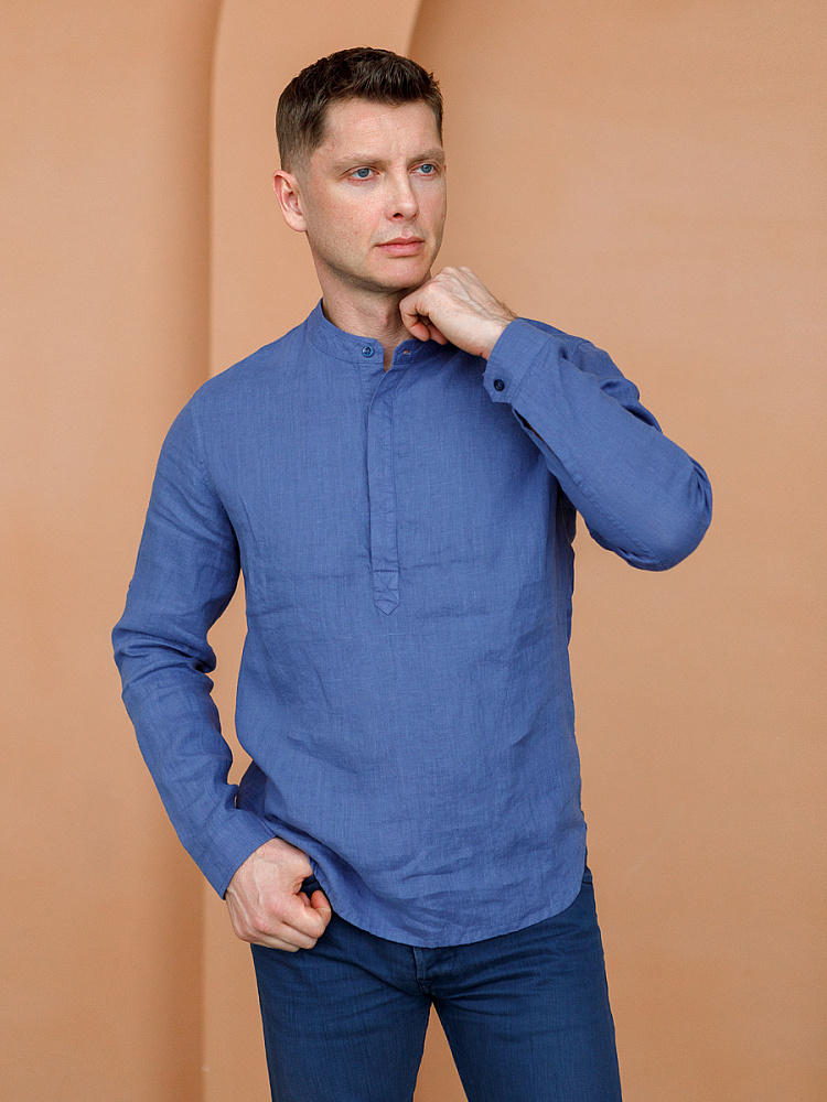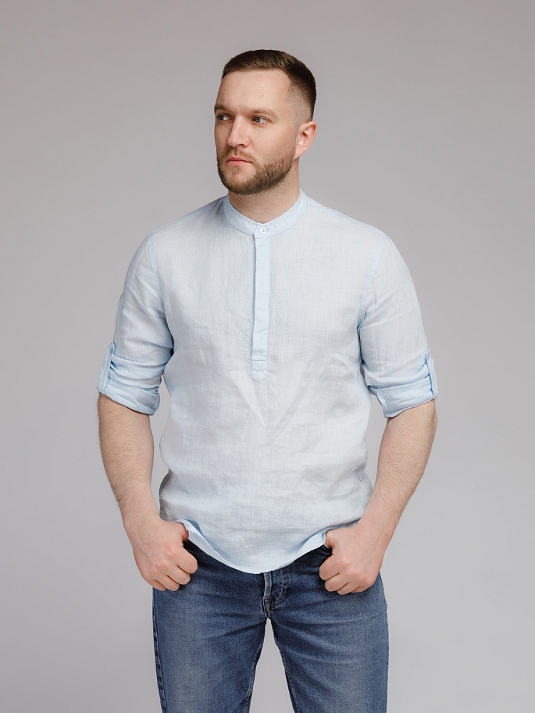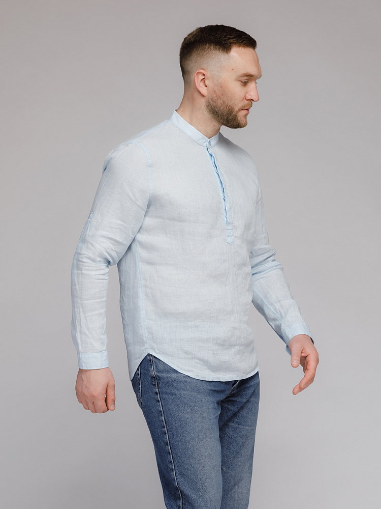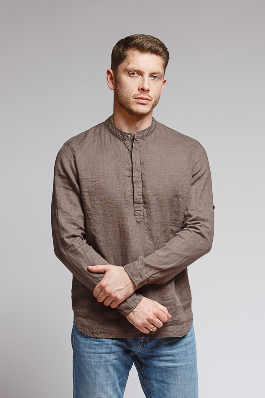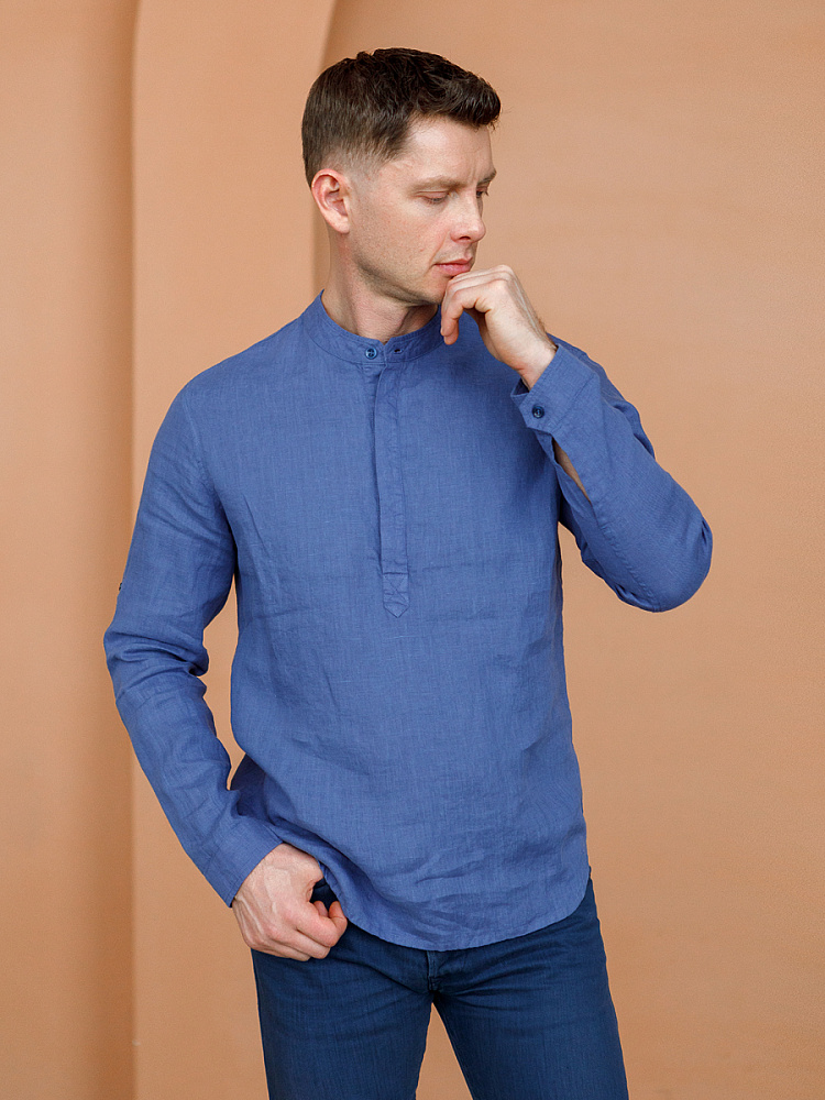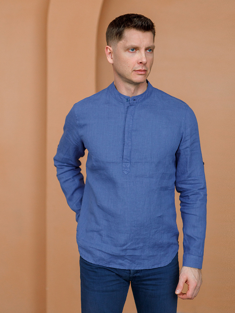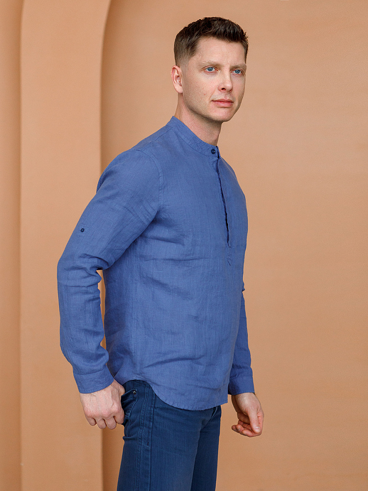 удобство испытает любой обладатель этой модели льняной сорочки. Аскетичный декор модели