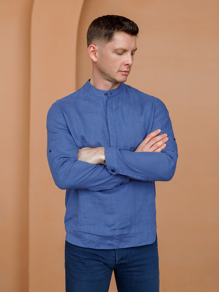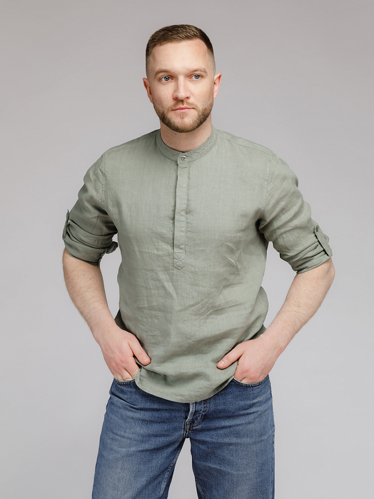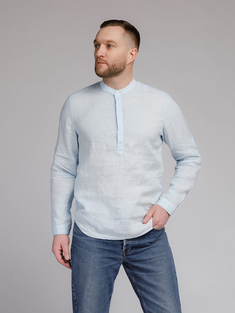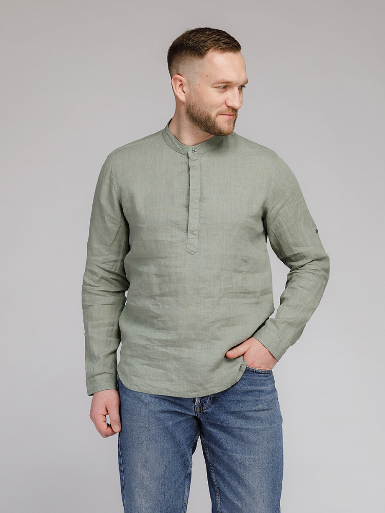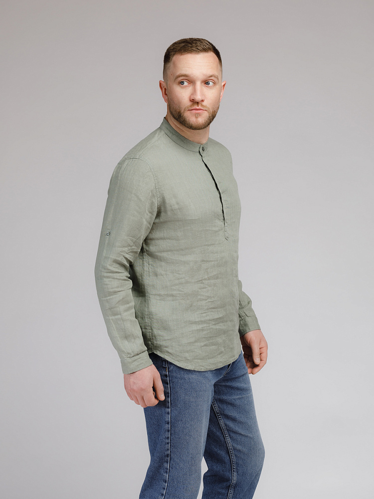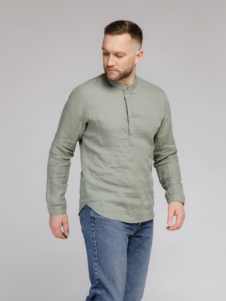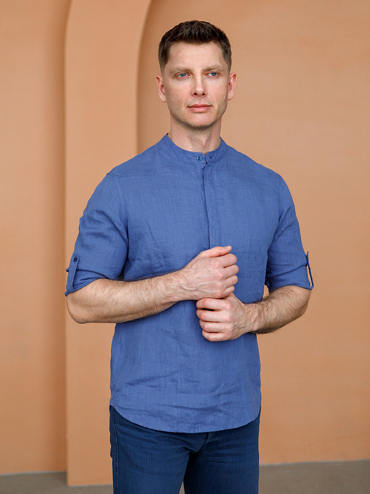 удобство испытает любой обладатель этой модели льняной сорочки. Аскетичный декор модели