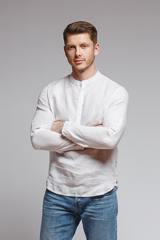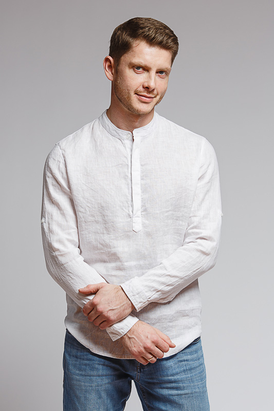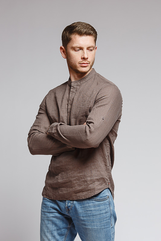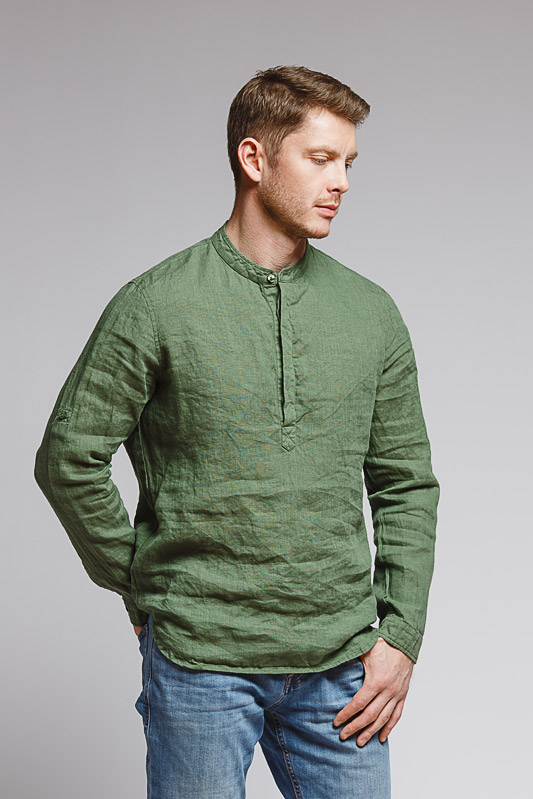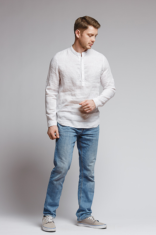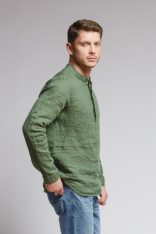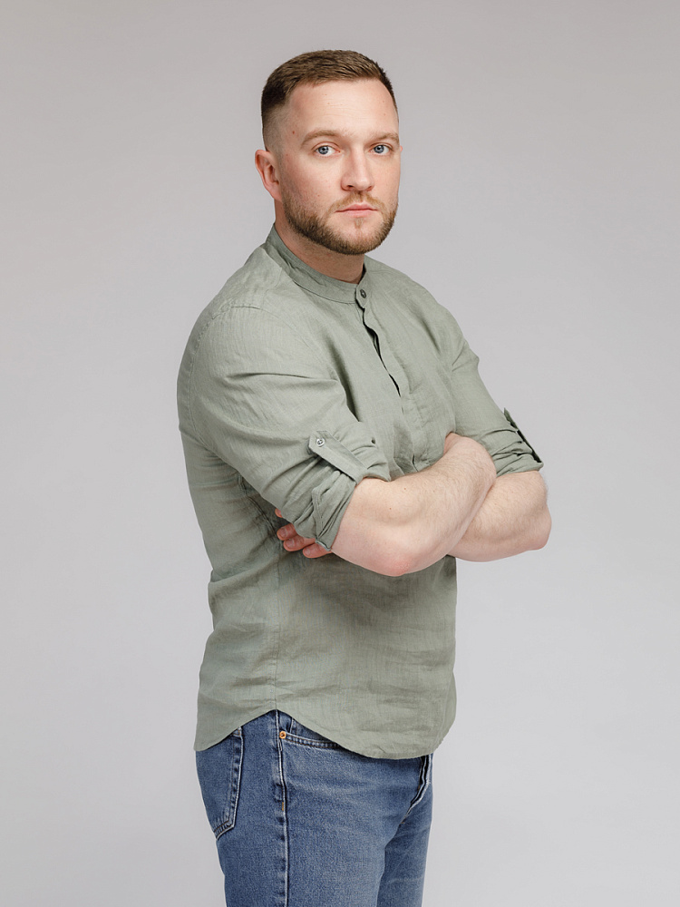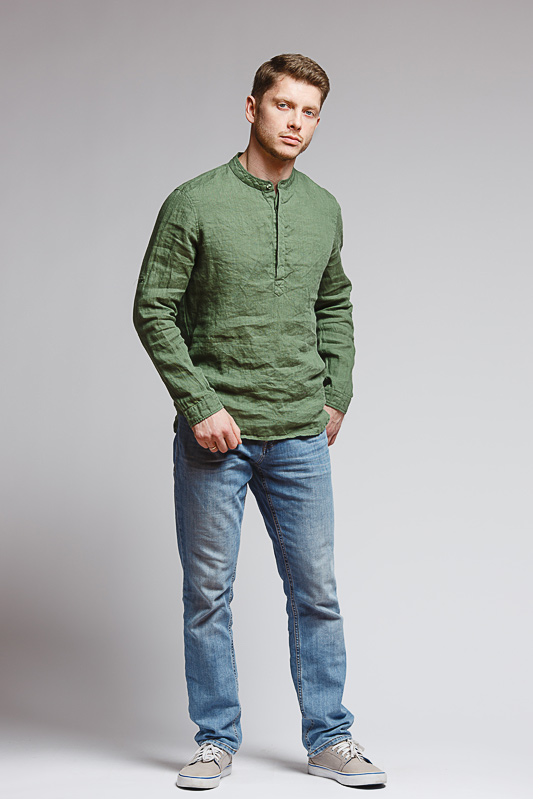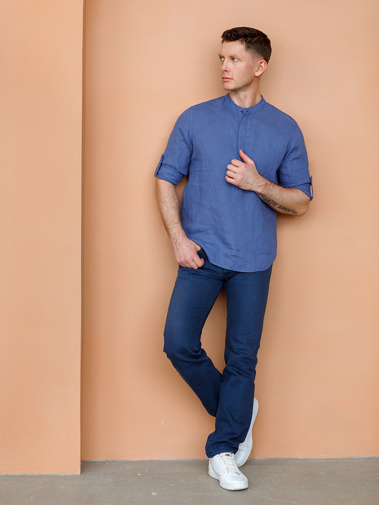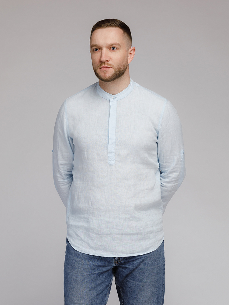 удобство испытает любой обладатель этой модели льняной сорочки. Аскетичный декор модели