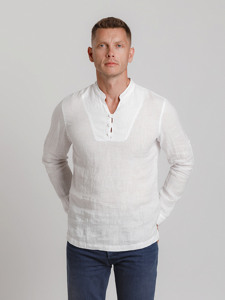 «новенькое» в магазинах одежды. Эта модель мужской сорочки из льна подойдет как любителям