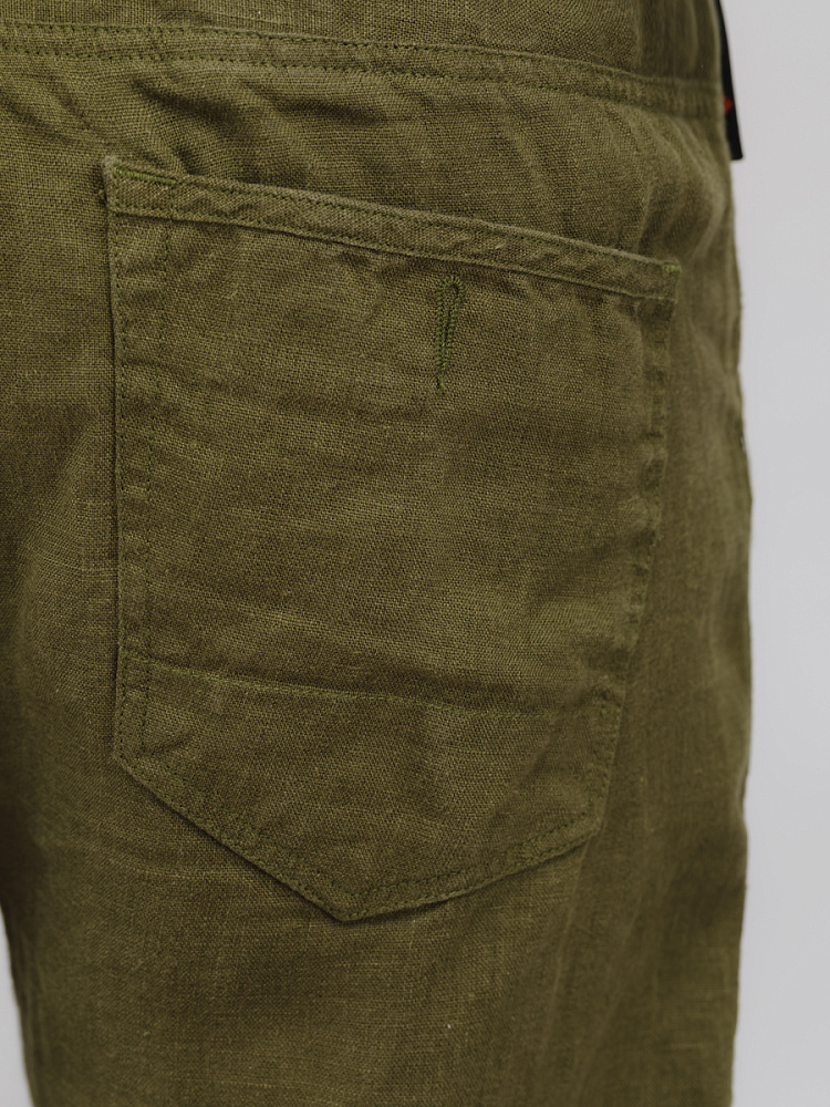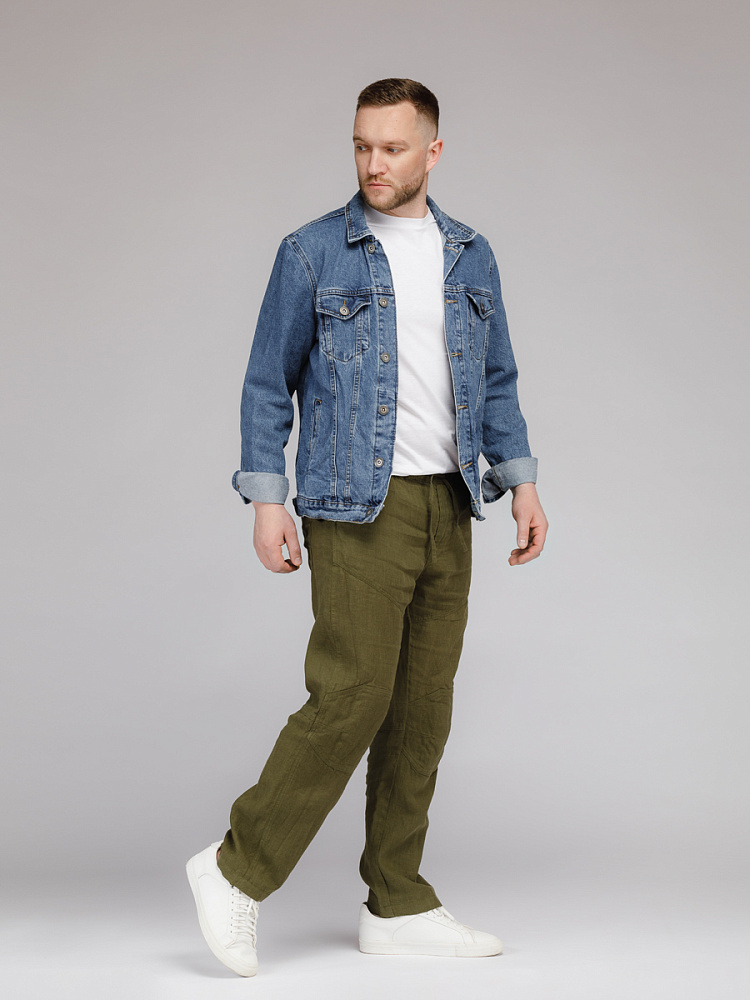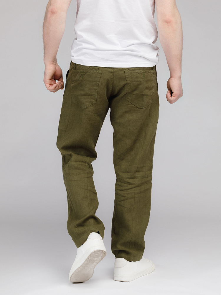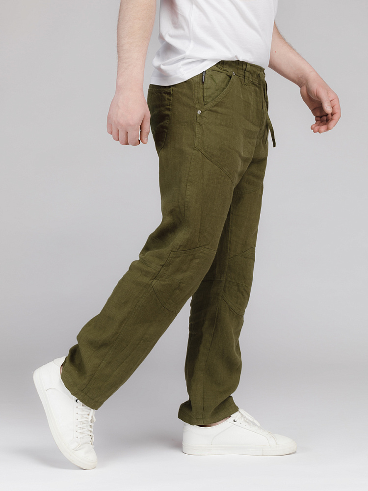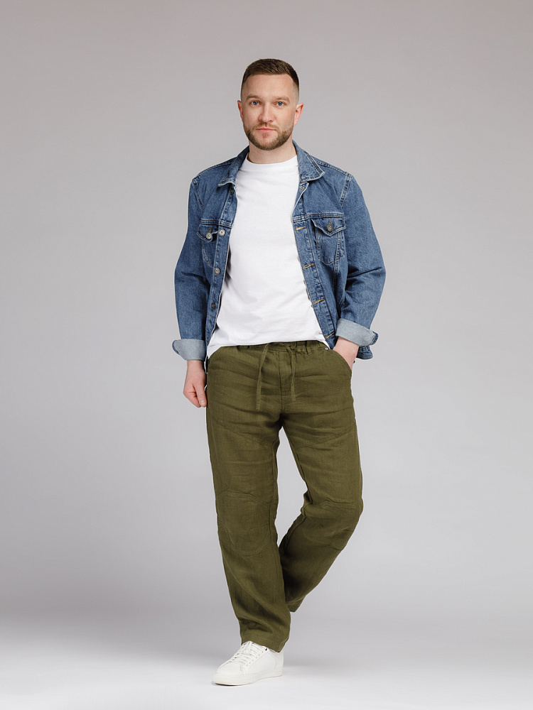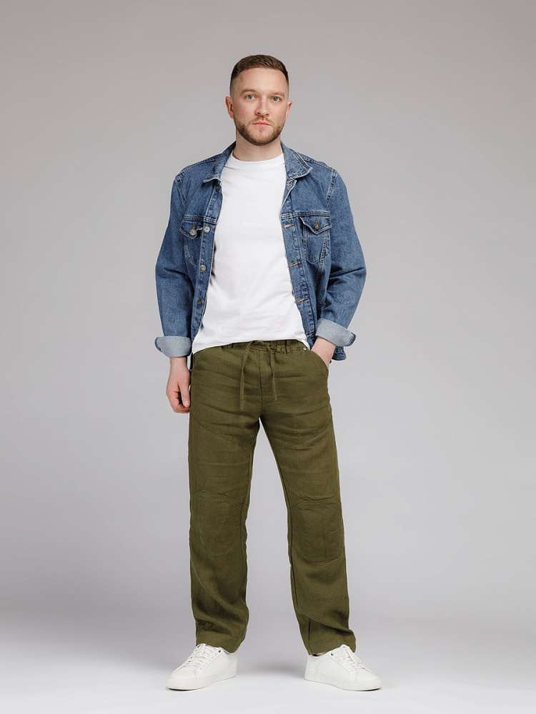 исполнении льна. Это и всевозможные отстрочки, и боковые карманы, и даже пояс на