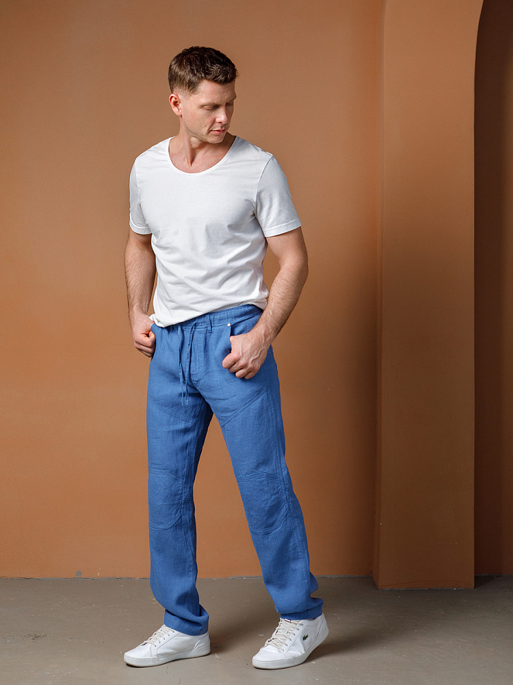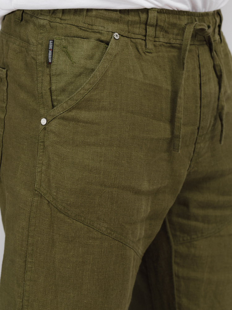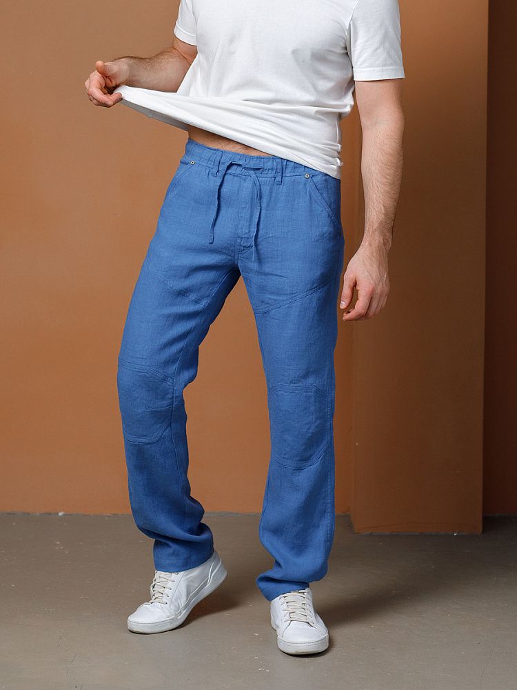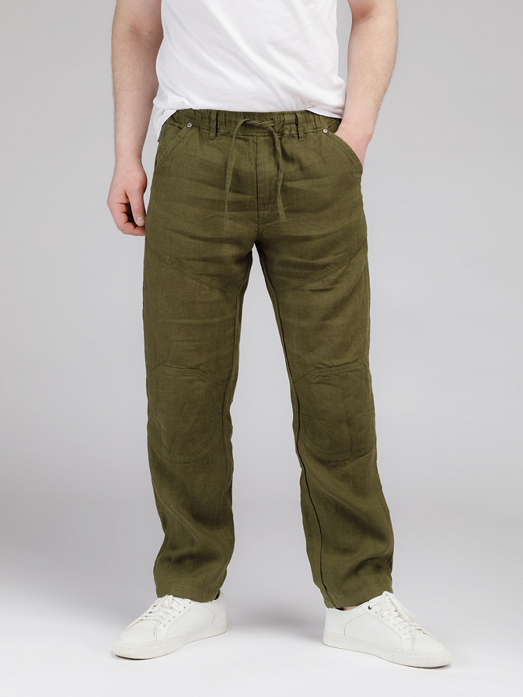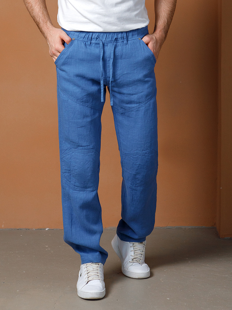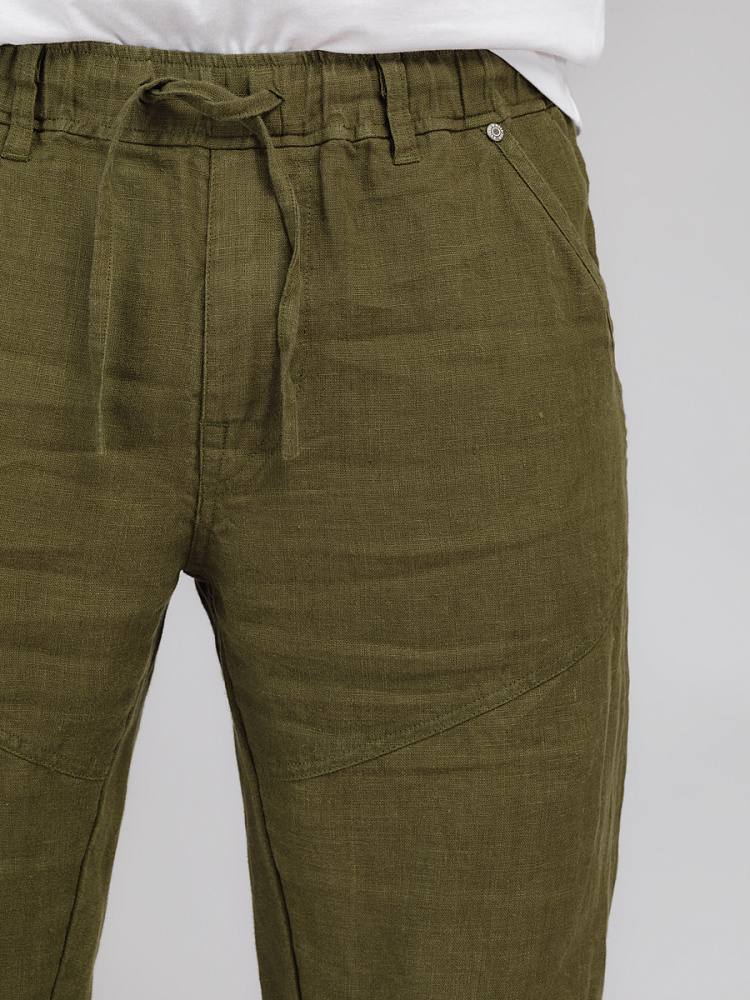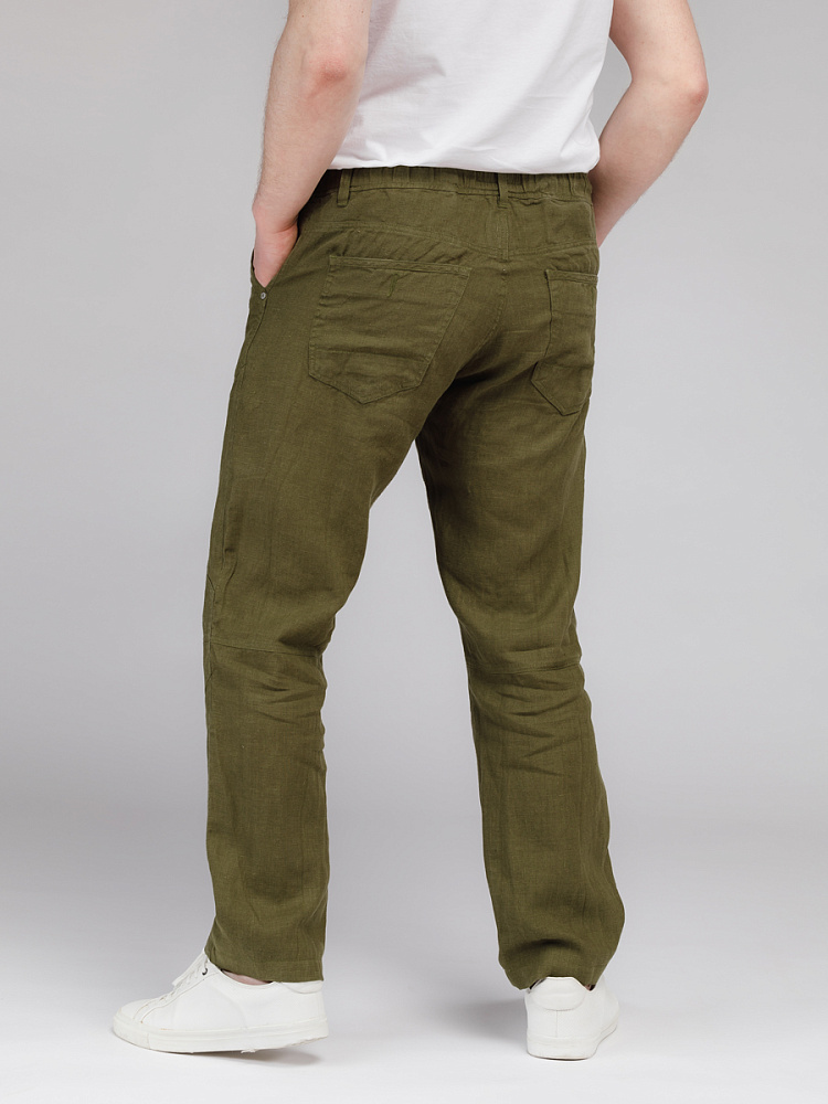 исполнении льна. Это и всевозможные отстрочки, и боковые карманы, и даже пояс на