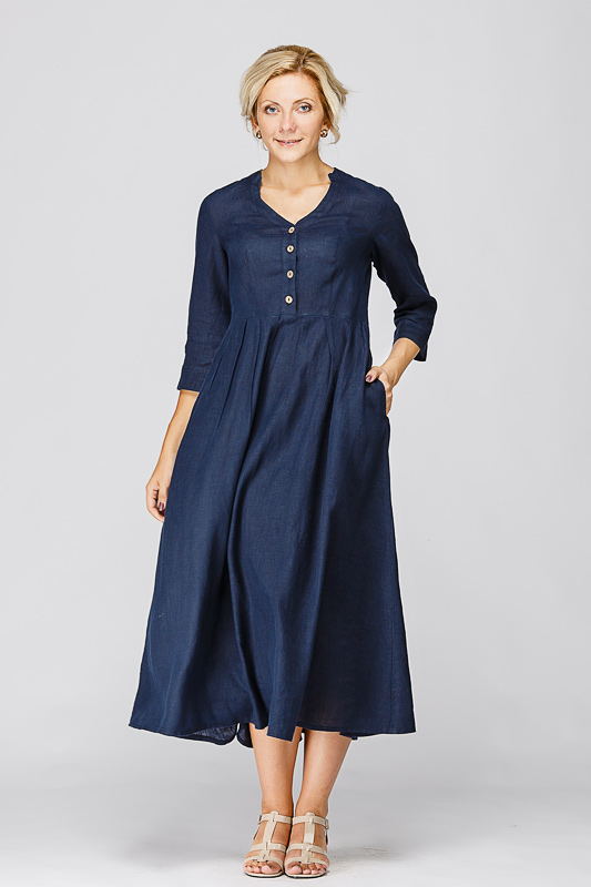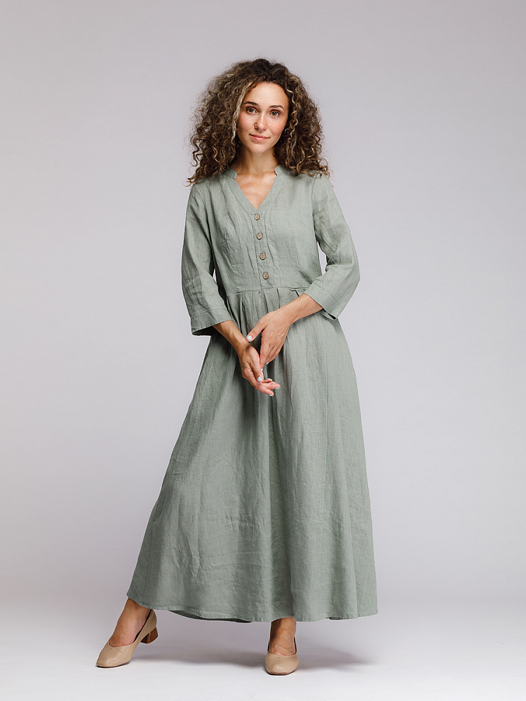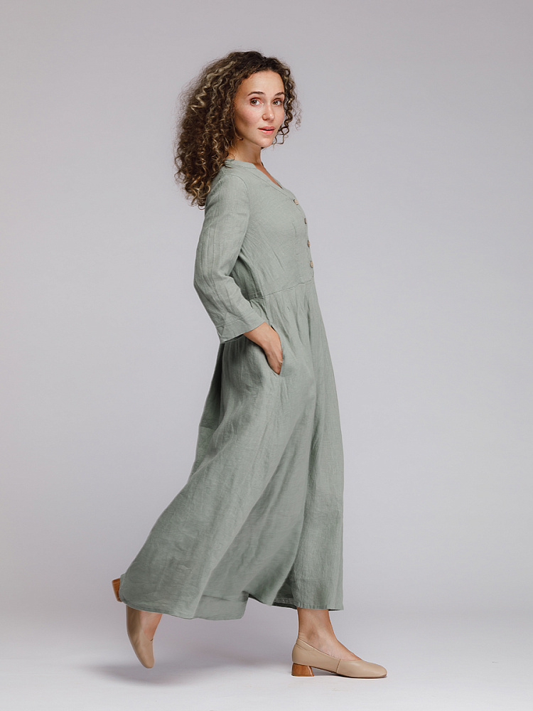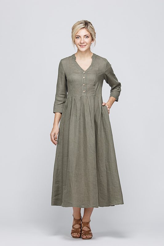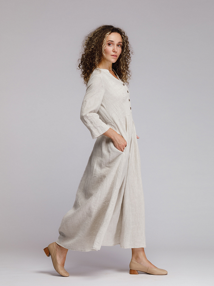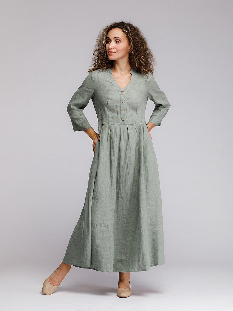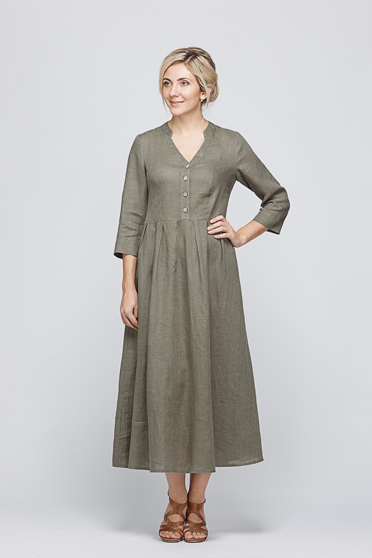 Утром в офис, вечером на прогулку. Платье свободного покроя, с аккуратными складками по талии, изящным воротником — стойкой и застежкой выручит вас в любой ситуации. Дополнив его различными аксессуарами, оно «создаст» вам множество летних образов.