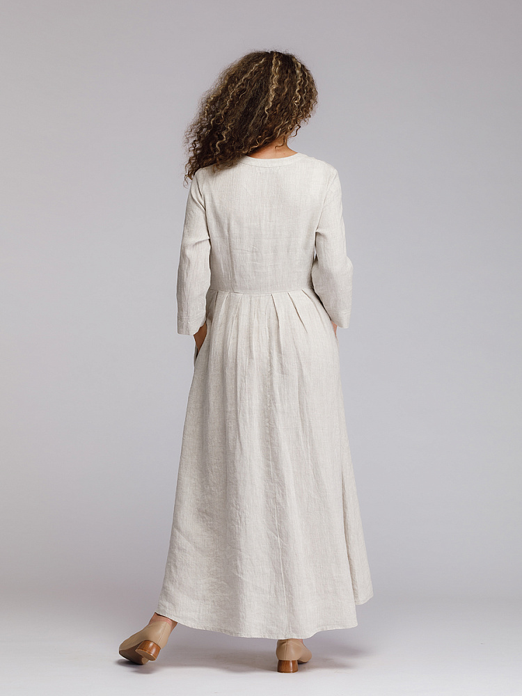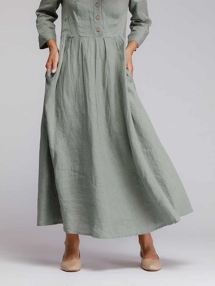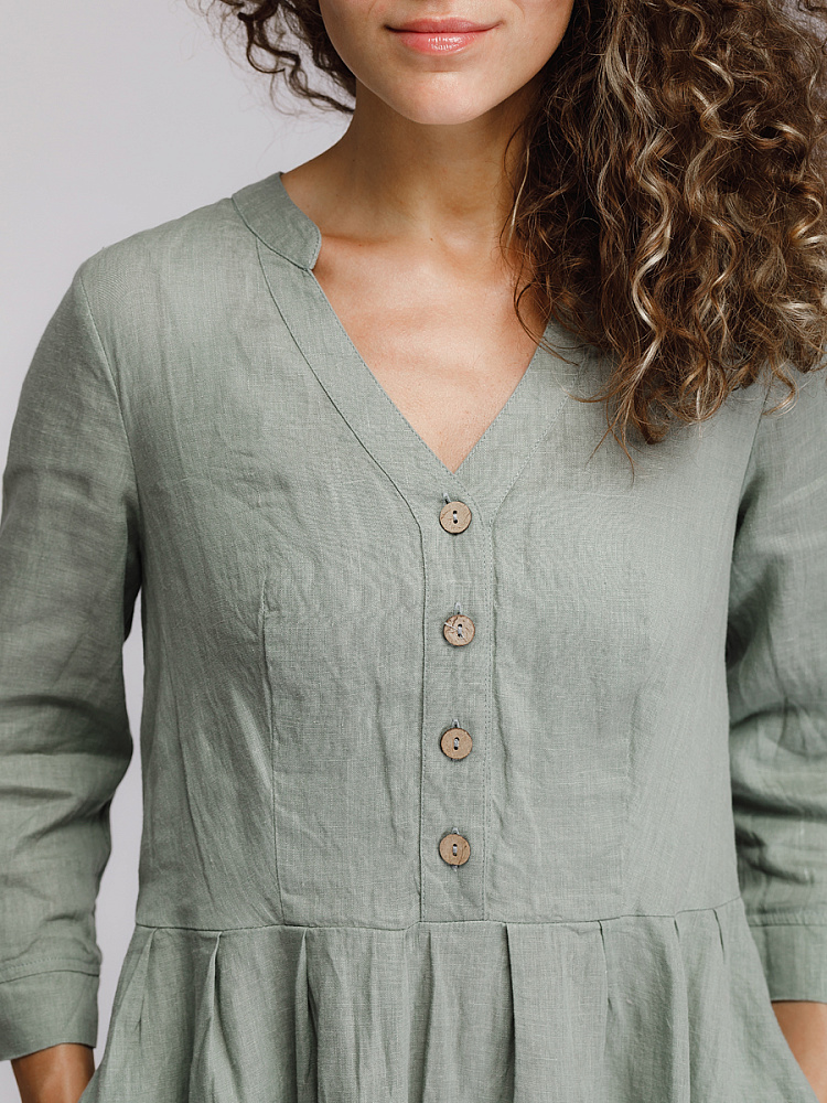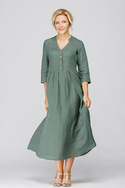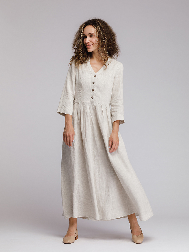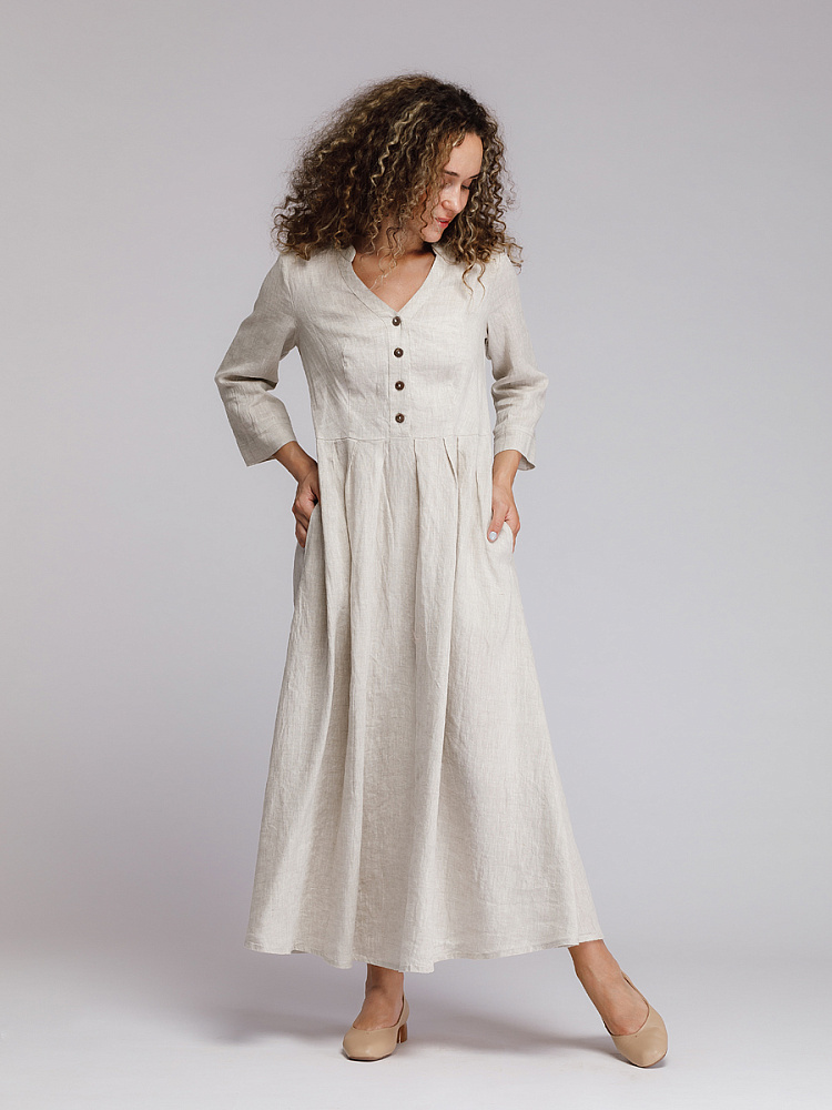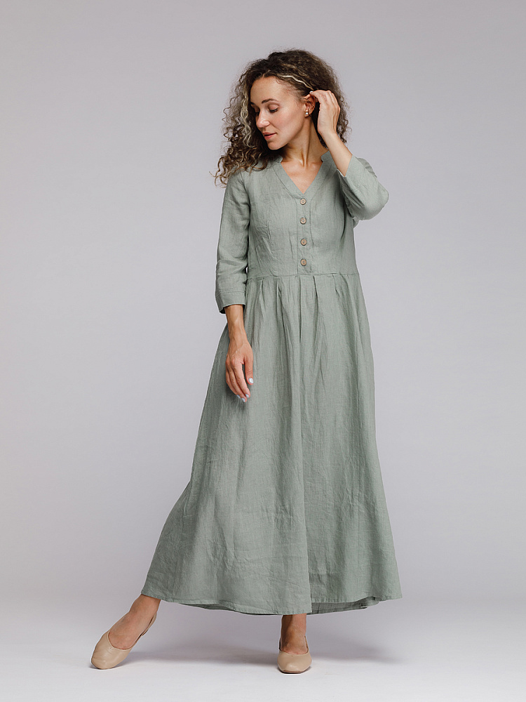 Утром в офис, вечером на прогулку. Платье свободного покроя, с аккуратными складками по талии, изящным воротником — стойкой и застежкой выручит вас в любой ситуации. Дополнив его различными аксессуарами, оно «создаст» вам множество летних образов.