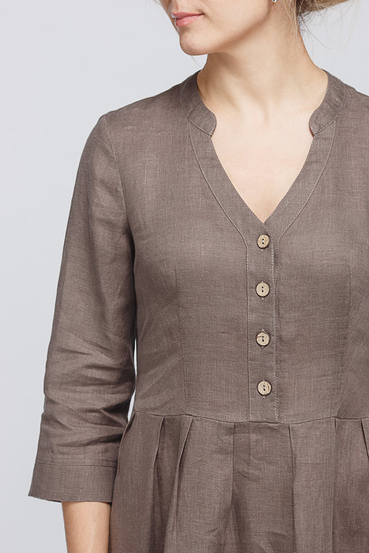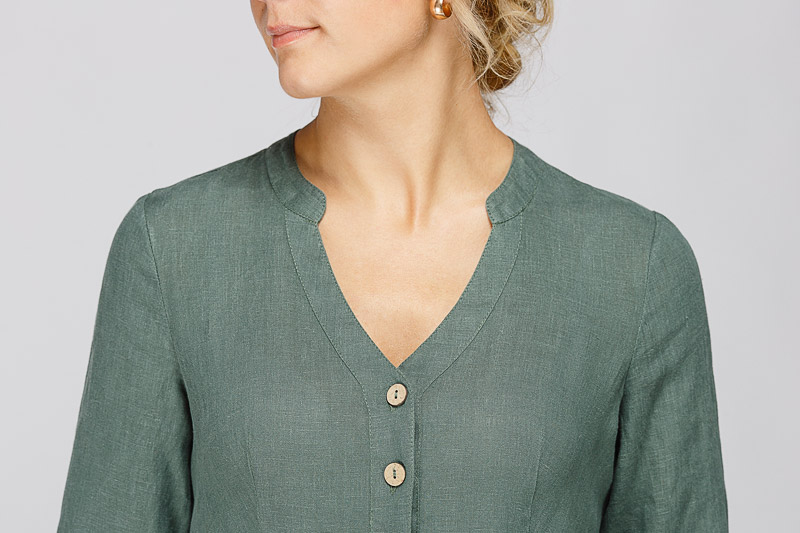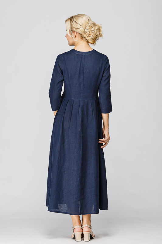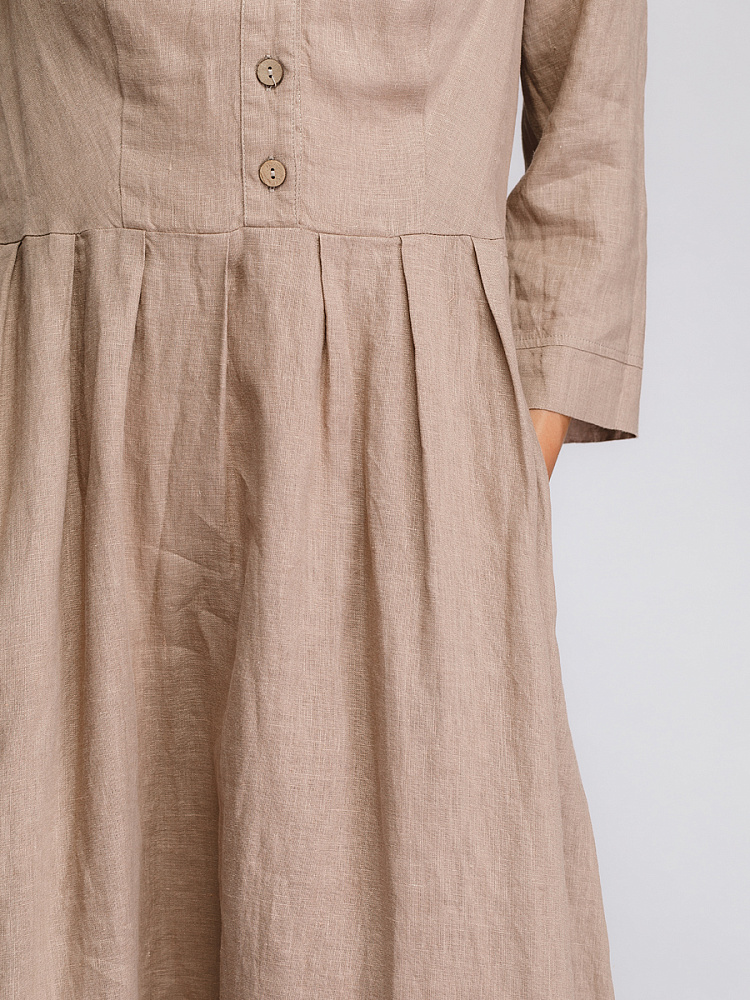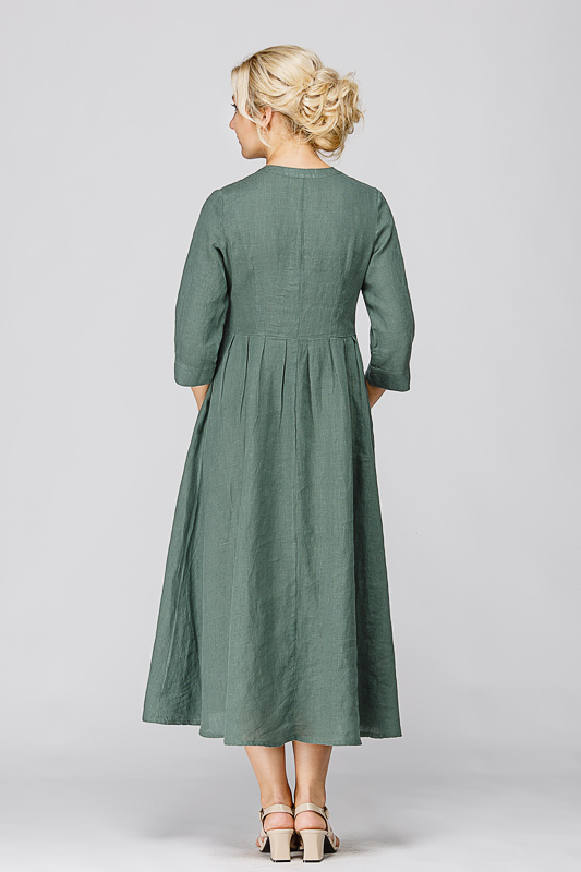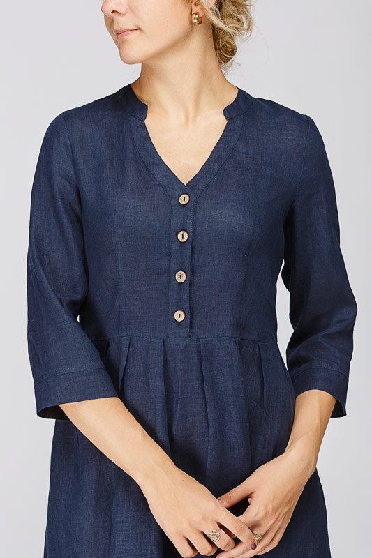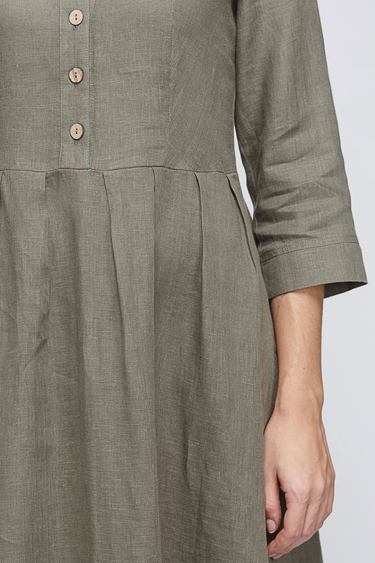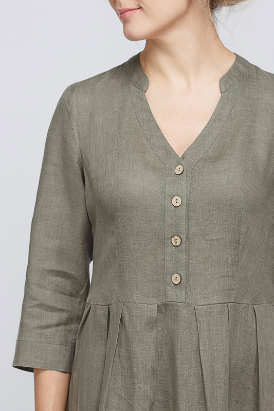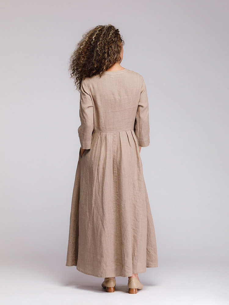 Утром в офис, вечером на прогулку. Платье свободного покроя, с аккуратными складками по талии, изящным воротником — стойкой и застежкой выручит вас в любой ситуации. Дополнив его различными аксессуарами, оно «создаст» вам множество летних образов.