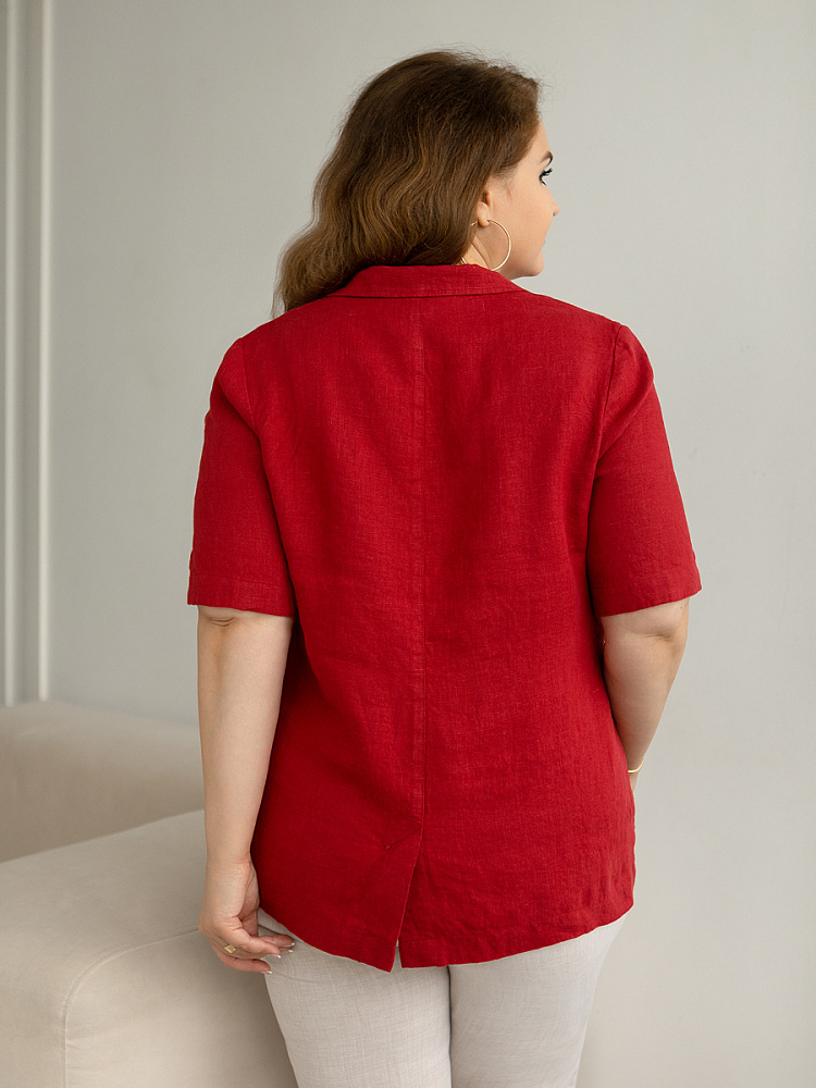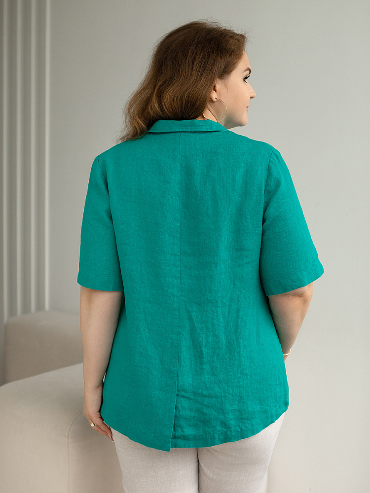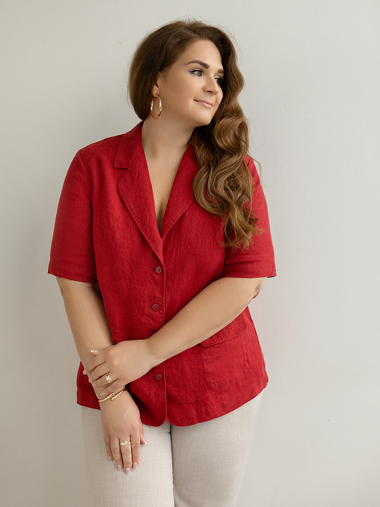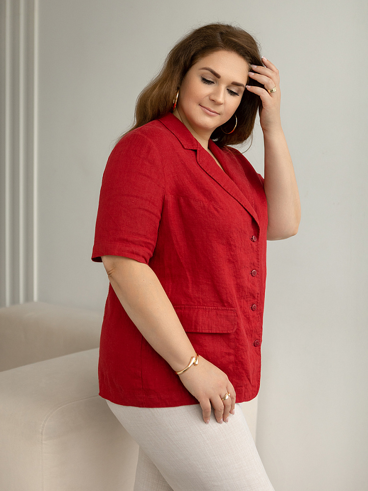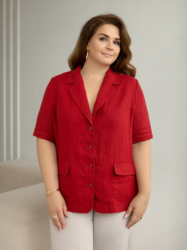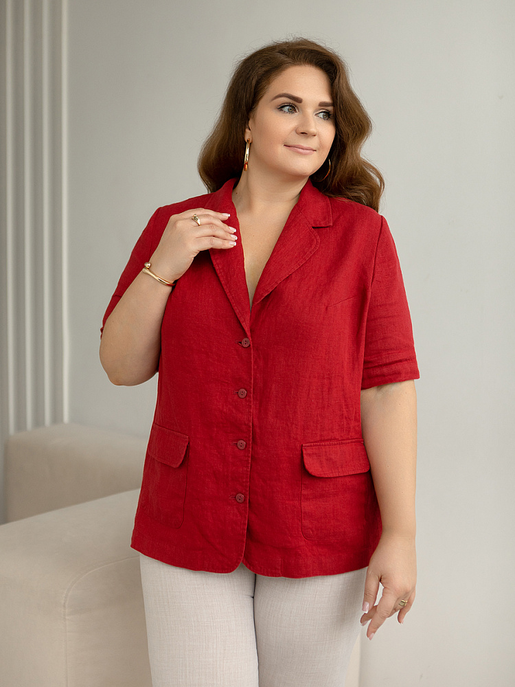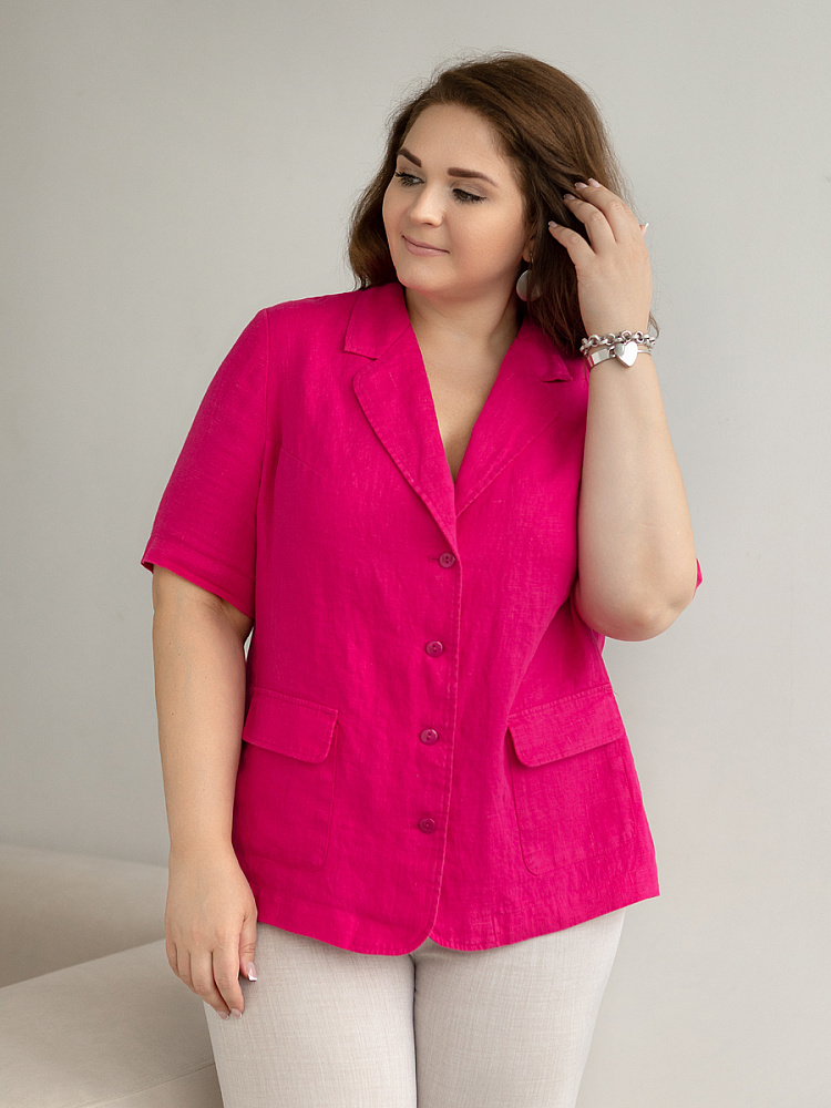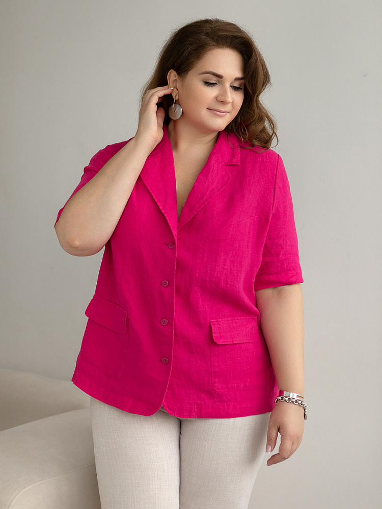 Ничего не может быть более универсальным чем льняной жакет прямого кроя. Устанешь перечислять образы, которые можно создать по средствам такой незаменимой вещи. Это могут быть дуэты с юбками и брюками, как для отдыха, так и для работы. И в каждом таком сочетании жакет как финальный штрих к образу. Но уверены, женщины весомых достоинств тратят массу времени на поиски такого универсального решения в свой гардероб. Разнообразия выбора в этом сегменте не много. Предлагаем обратить внимание на жакет из натурального льна от Kayros. Он разработан с учётом пожеланий обладательниц аппетитных форм. Прямой силуэт хорошо скрывает проблемные участки и не вызывает дискомфорта во время движений. Длина чуть ниже линии бёдер надёжно скрывает проблемную область паха. Ведь мы знаем, как способны испортить образ в целом плохо сидящие на фигуре брюки. Этот жакет поможет вам избежать этого. Классический пиджачный воротник со скруглёнными лацканами подчеркнёт вашу женственность. А подобная форма накладных карманов и край борта усилят этот эффект. Практичный втачной рукав длиной до локтя удобен жарким летом.
